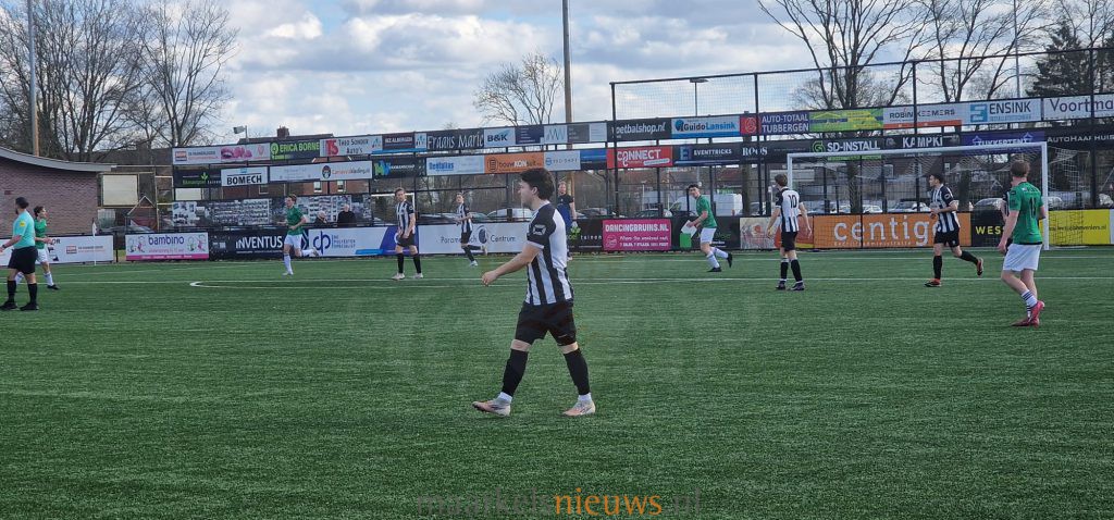 Sportclub Markelo is uitstekend uit de winterstop gekomen. Vandaag wonnen de zwart-witten alweer hun derde wedstrijd van 2026. Dit keer werd de Tukkers uit Albergen met 2-3 verslagen. Al na vijf minuten spelen wist Sportclub Markelo het net te vinden. Aanvaller Miquel Schippers schoot zijn ploeg op 0-1 voorsprong. Vervolgens kregen de Tukkers iets meer de overhand. Het kreeg een paar goede mogelijkheden, maar doelman Ruben Schut wist zijn doel schoon te houden. Na een half uur spelen moest hoofdtrainer Thijs Houwing noodgedwongen wisselen. Doelpuntenmaker Miquel Schippers moest geblesseerd het veld verlaten, hij werd vervangen door Lucas Schut. Toch ging Sportclub Markelo met een goed gevoel de kleedkamers in. Op slag van rust verdubbelde Mickey Slotman de score door de 0-2 te maken. In de tweede helft golfde het spel op en neer. En na een uur spelen deden de Tukkers wat terug door de bal in de verre bovenhoek binnen te schieten. Door dit doelpunt kwam de Tukkers weer terug in de wedstrijd. Zij voelden na de 1-2 dat er meer te halen viel. Toch was het Sportclub Markelo dat een kwartier voor tijd de wedstrijd leek te beslissen. Marcio Kok zorgde met een prachtig doelpunt voor de 1-3. Toch bleef de wedstrijd tot het einde spannend. In blessuretijd maakte Kjell Huisman nog de 2-3 voor de Tukkers, maar de overwinning werd uiteindelijk vakkundig door Sportclub Markelo over de streep getrokken. Zo pakt de ploeg van Thijs Houwing wederom drie punten in een lastige uitwedstrijd. Door de overwinning staat Sportclub Markelo op een gedeelde tweede plaats. Samen met Germanicus, AZC en WKE'16 heeft het 27 punten. Volgende week zondag 8 maart staat er dan ook een heuse topper op het programma. Dan komt namelijk WKE'16 op bezoek aan de Endemasndijk. Het duel begint om 14:00 uur en staat onder leiding van de heer van Klooster.