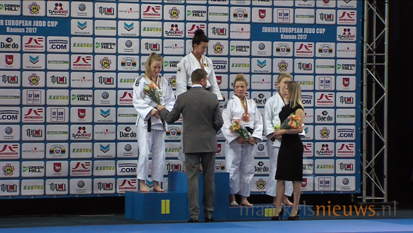 Voor haar derde Europacup deelname dit jaar stond de Markelose Hilde Jager gisteren op de judomat in Kaunas in Litouwen. Nadat ze de eerste ronde een vrijloot had won ze achtereenvolgens in de volgende rondes van drie judoka's. In de finale ontmoette ze de Belgische Gabriëlla Willems. De finale was een spannende partij die lange tijd gelijk op bleef gaan totdat in een grondgevecht de Belgische, grip kreeg op een arm van Hilde en haar kon laten aftikken. Een verloren finale maar toch weer een prachtige zilveren medaille voor Hilde die dus wel goed op weg lijkt te zijn naar volledig herstel van haar blessure.