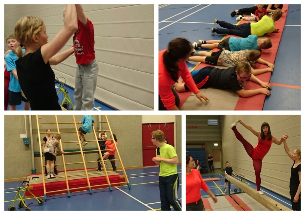 Ze stonden te popelen om onder begeleiding van Lara Bieshaar en Lotte Borghuis lekker te gaan sporten in de sportzaal van Sporthal De Haverkamp. Tijdens de reguliere gymlessen van Gymvereniging Markelo is het haast niet mogelijk voor deze groep kinderen met een beperking om mee te draaien. Op initiatief van Lara Bieshaar, trainster bij de vereniging en buurtsportcoach Ilke van Schooten is daarom gestart met het organiseren van gymlessen juist voor deze groep kinderen. Gezien de positieve reacties en blije gezichtjes was de eerste les een groot succes. Lara en Lotte geven elke donderdag van 17.00 tot 18.00 uur les. Bent u nieuwsgierig geworden? U bent van harte welkom om een keertje te komen kijken.