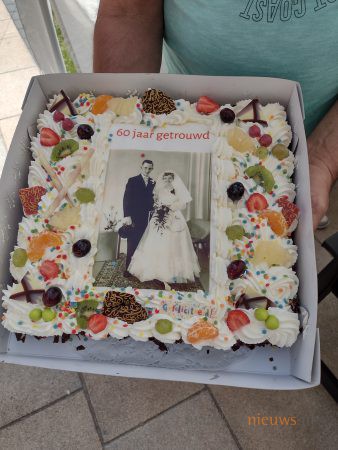 Johan en Alie Stoelhorst waren afgelopen week 60 jaar getrouwd. Door de buren van de Stoevelaarsweg werd een mooie boog geplaatst. Samen met kinderen en kleinkinderen werd het diamanten huwelijksjubileum thuis in het klein gevierd. Overladen met bloemen en cadeaus was het een geslaagde dag voor Johan en Alie.