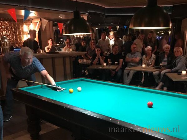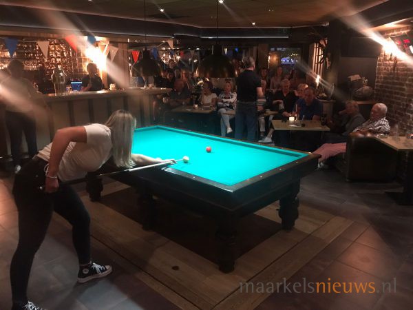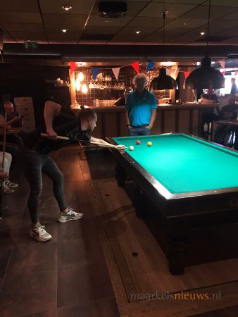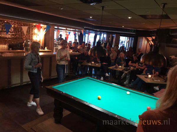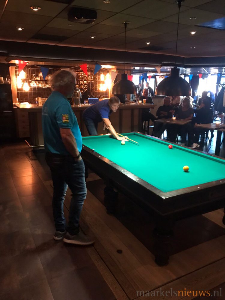 Wim heeft de biljartwedstrijd tegen Bart in 36 beurten beslist door als eerste zijn benodigde 50 caramboles rond te spelen. Laura Kok en Ine Greven starten hun biljartwedstrijd om de 3e en 4e plaats bij de dames. Laura; Biljartkoningin 2019 moet 29 caramboles maken waar Ine voldoende heeft aan 22 om de wedstrijd op haar naam te kunnen schrijven.
