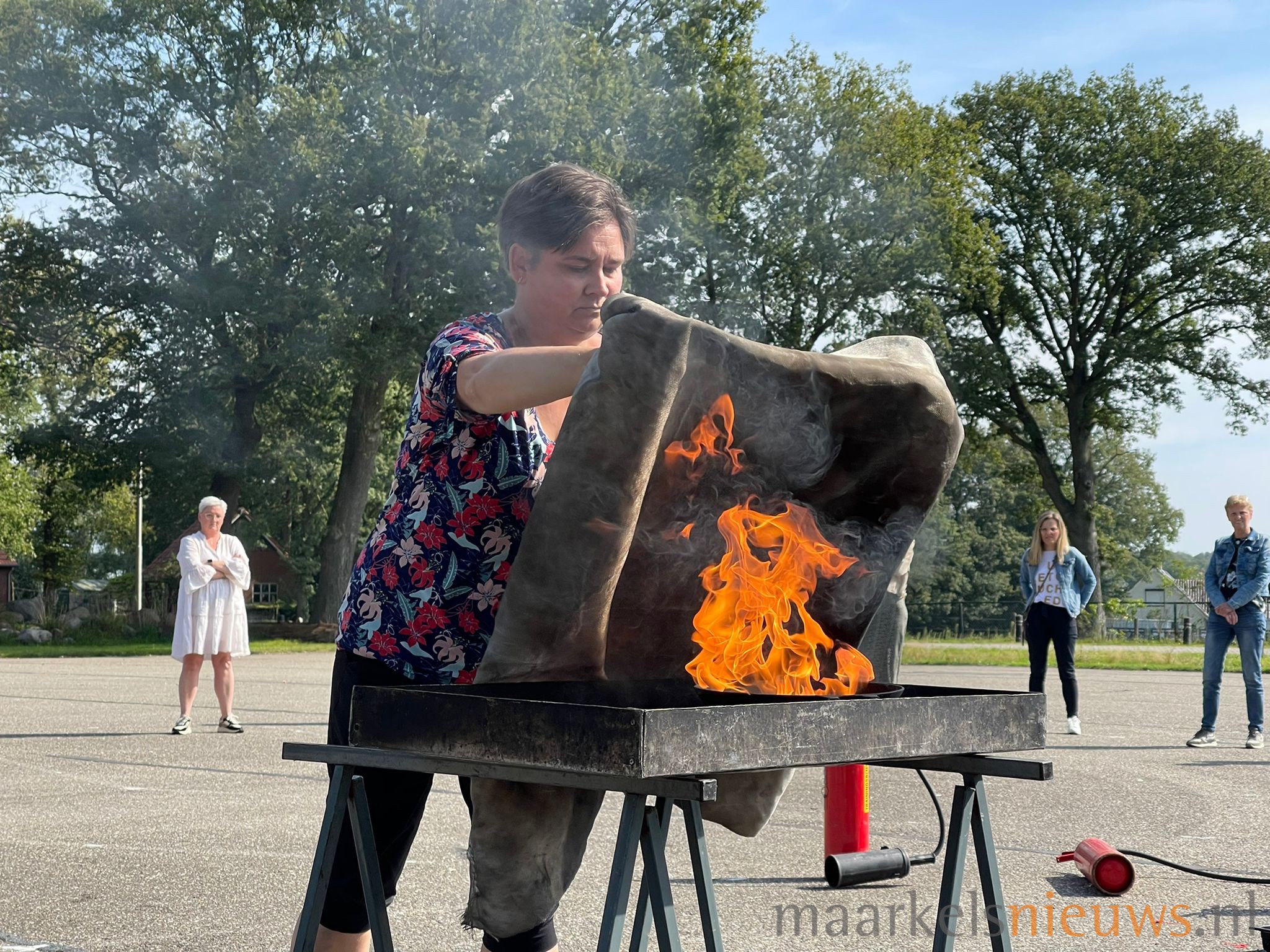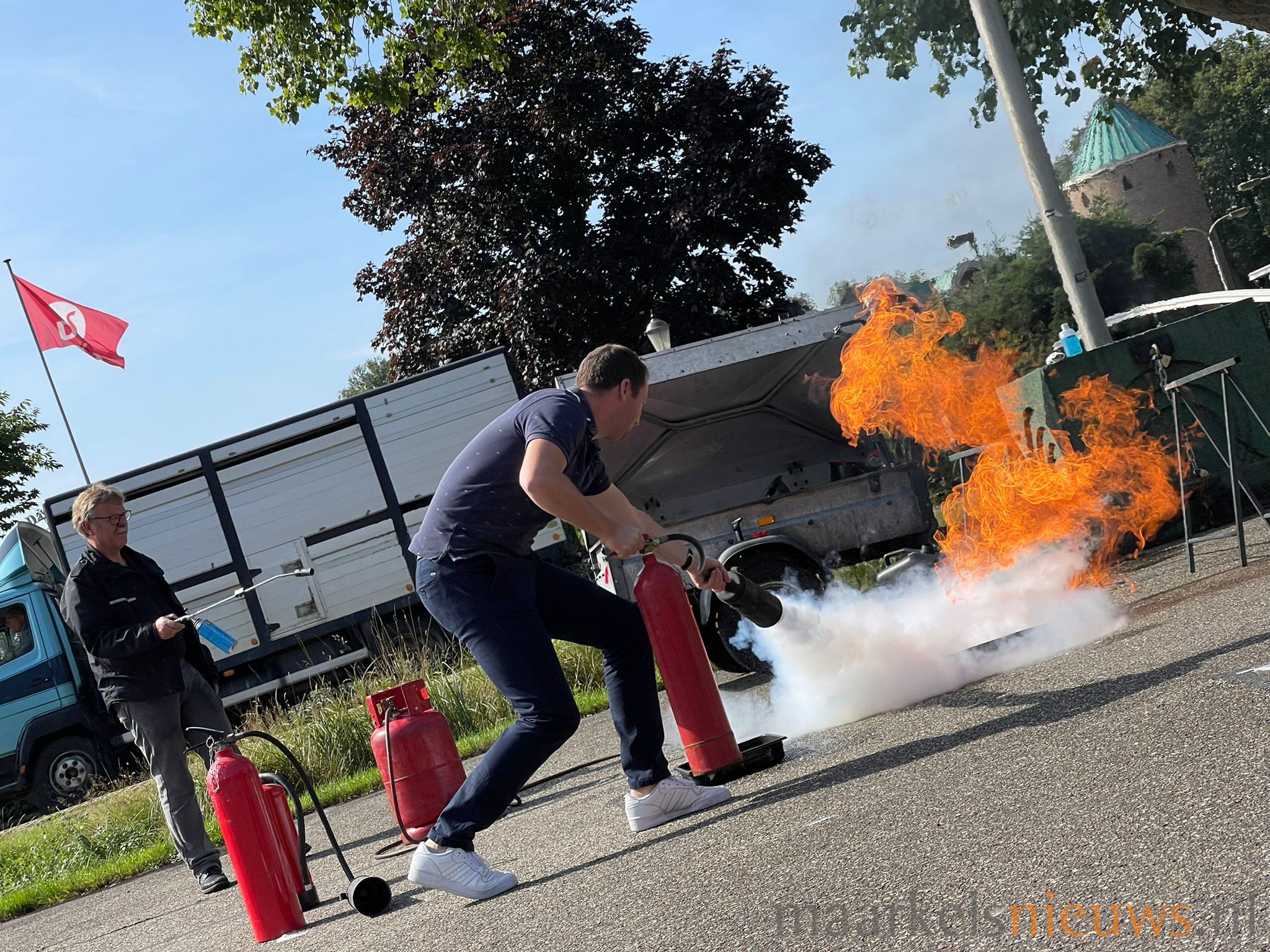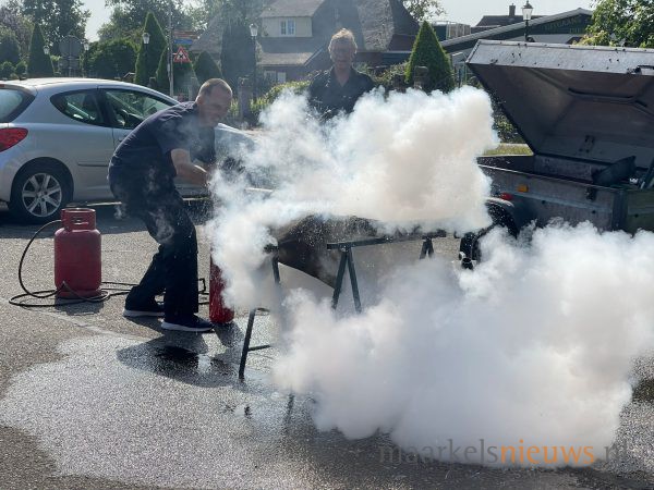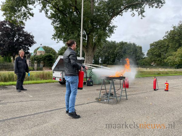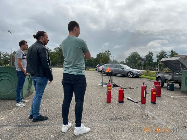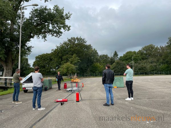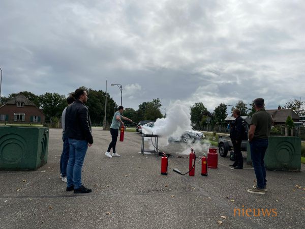 Op de parkeerplaats van Dieka van de Kruusweg zijn gisteren weer een aantal brandjes in de kiem gesmoord. Ze vormden het decor van de BHV-cursussen die op maandag 6 en 13 september werden gegeven bij Dieka van de Kruusweg. De leden van Ondernemend Markelo kunnen elk jaar deelnemen aan deze BHV cursus om adequaat te kunnen handelen bij ongevallen op de bedrijfsvloer. Ondernemend Markelo heeft het initiatief genomen om deze cursussen voor haar leden jaarlijks in Markelo te organiseren in samenwerking met Hans Bakker van MotoRescue.