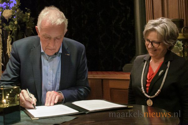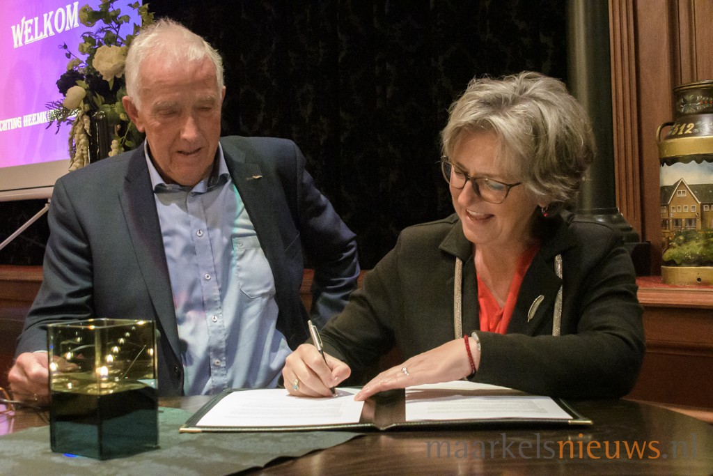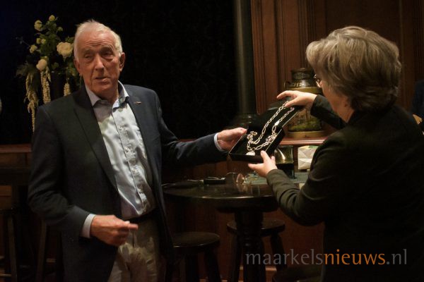 Het jubileum werd gisteren gevierd bij De Haverkamp. Namens de gemeente Hof van Twente overhandigde burgemeester Ellen Nauta de stichting de ambtsketting en de voorzittershamer van de voormalige gemeente Markelo en werden tevens twee herdenkingsmunten van oud-burgemeester Baron Taets van Amerongen van Natewisch overhandigd. Taets van Amerongen was van 1907 tot 1933 burgemeester van Markelo. Bij zijn 25-jarig burgemeestersjubileum in 1932 is hem door de raad en het personeel van de gemeente Markelo een speciale herdenkingsmunt aangeboden. Twee van deze munten zijn via een nazaat van Taets van Amerongen bij de gemeente Hof van Twente beland. Zowel de munten, de voorzittershamer als de ambtsketting zijn door de gemeente in bruikleen gegeven aan de Stichting Heemkunde Markelo.