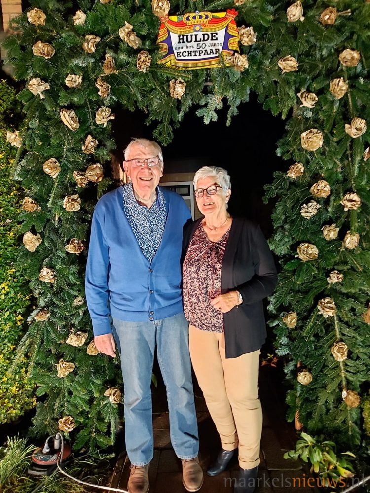 Diny en Willy Schreurs zijn vandaag 50 jaar getrouwd. De buren hebben woensdagavond een mooie boog met gouden roosjes gemaakt aan de Tolweg en de boog is vervolgens goed ‘nat’ gemaakt. Vanmiddag wordt het 50 jarig huwelijksfeest gevierd, namens de buurt wensen we Diny en Willy nog veel gelukkige en gezonde jaren toe.