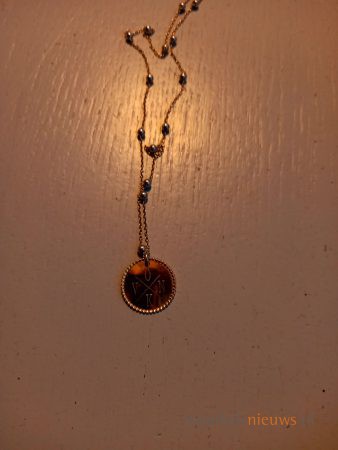 Aan de Roosdomsweg in Markelo is vanmiddag bovenstaande ketting gevonden. In de ketting staan een initialen. Mocht iemand deze ketting herkennen als die van hem of haar, dan vernemen we dat graag via klepperderk@maarkelsnieuws.nl. UPDATE: De eigenaar van de ketting heeft zich inmiddels gemeld.