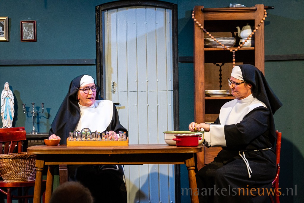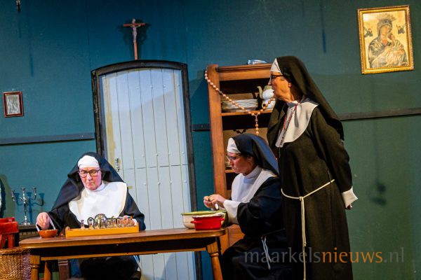 In de gemeenschapsruimte van Elserike was vanavond de première van het blijspel ‘Stampij in de abdij’ van de toneelgroep Herike-Elsen. In een avondvullende voorstelling verdeeld over 2 bedrijven voor de pauze en 1 bedrijf na de pauze wist de groep de lachers al snel op haar hand te krijgen. Het stuk speelt zich af in een klooster waar de nonnen te lijden hebben onder het schrikbewind van moeder-overste Braspenning. Pogingen om hier iets aan te doen lijken gedoemd te mislukken. De komst van de paar broeders kan hen misschien helpen. Van begin tot eind een leuk stuk dat door de toneelgroep in korte tijd werd voorbereid en na 2 jaar coronapauze als een warme deken voelde voor het aanwezige publiek.