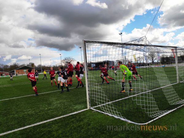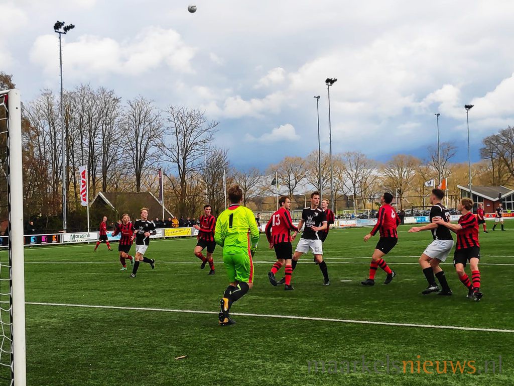 Sportclub Markelo heeft vanmiddag voor de tweede keer dit seizoen puntverlies geleden. Aan de Endemansdijk werd met 2-2 gelijk gespeeld tegen Rood-Zwart uit Delden. De thuisploeg wist de gehele wedstrijd weinig kansen te creëren en behaalde niet het niveau om Rood-Zwart over de knie te leggen. De bezoekers uit Delden kwamen ook na 35 minuten spelen op voorsprong. Een hoekschop werd bij de eerste paal binnen gewerkt. Niet veel later kreeg Sportclub Markelo een strafschop nadat Sam Warmelink van achteren werd neergehaald. Echter zag Mickey Slotman zijn strafschop gekeerd worden door de doelman van Rood-Zwart. De hoekschop die daarop volgde was wel raak doordat een speler van Rood-Zwart de bal in eigen doel werkte, 1-1. Na de gelijkmaker had de thuisploeg niet lang nodig om op voorsprong te komen. Een mooie aanval eindigde bij Miquel Schippers die de zwart-witten op een 2-1 voorsprong schoot. Na rust had diezelfde Schippers nog dé mogelijkheid om de 3-1 binnen te schieten maar hij miste. Uiteindelijk knokte Rood-Zwart zich nog naar een gelijkspel. Dom balverlies van Sportclub Markelo leidde een penalty in. Vanaf 11 meter wisten de bezoeker uit Delden dit cadeautje wel uit te pakken en zette daarmee de 2-2 eindstand op het scorebord. In alle opzichten was het vandaag ondermaats voor de ploeg van Rutger Kats, dat volgende week op bezoek bij laagvliegend Rietmolen beter voor de dag zal moeten komen.