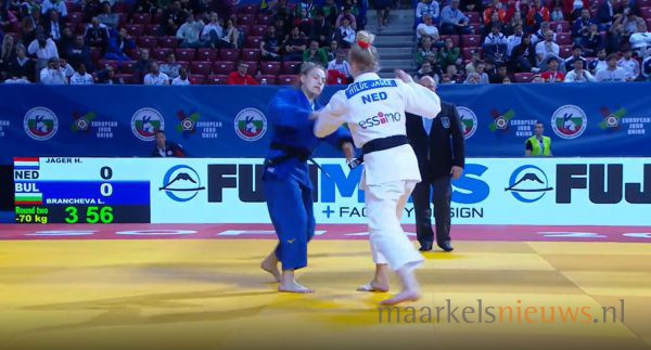 Hilde Jager heeft vanmiddag in een plek om de eindstrijd op de Europese kampioenschappen judo in de klasse tot 70 kilogram haar meerdere moeten erkennen in de Française Marie-Eve Gahié. De 24-jarige Markelose judoka zorgde eerder op de dag voor een stunt door als debutant de halve finale te bereiken door af te rekenen met de Servische Jovana Buncic, de Bulgaarse Lidia Brancheva en de Zweedse Ida Eriksson. De Nederlandse judoka Sanne van Dijke wist de finale te bereiken en mag het daarin opnemen tegen Marie-Eve Gahié. Hilde Jager heeft nog kans op brons. In de herkansingen moeten ze het opnemen tegen de Sloveense Anka Pogacnik, die in de derde ronde verloor van Sanne van Dijke.