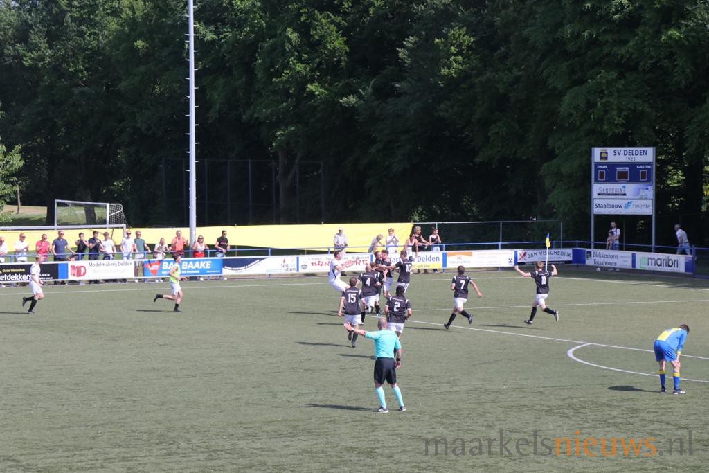 In de tweede helft bleven beiden ploegen strijdvaardig op zoek gaan naar die belangrijke openingstreffer. Deze kwam er ook, na 65 minuten spelen brak SV Delden de ban. De rechtsbuiten van Delden kwam naar binnen en schoot de bal beheerst over doelman Olminkhof heen. Een mentale tik voor de bezoekers uit Markelo die vervolgens op zoek moesten naar de gelijkmaker. Delden stopte na de 1-0 met druk zetten naar voren en liet Sportclub Markelo komen. Dit zorgde kort voor tijd voor de verdiende gelijkmaker. Een voorzet van Ferdi Pinkert werd afgerond door Mickey Slotman waardoor de 1-1 eindstand op het bord werd gezet. Een meer dan verdiend punt voor Sportclub Markelo dat uiteindelijk als morele winnaar van het veld stapte. Volgende week zondag vervolgt Sportclub Markelo de titelkoers aan de Endemansdijk tegen Hector uit Goor.