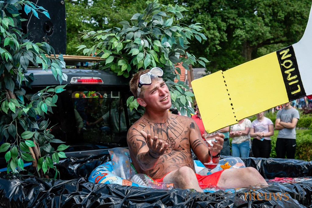 Dat de wagenbouwers van Herike-Elsen altijd hoge ogen gooien tijdens de optocht op de laatste zondag van augustus is niet zo vreemd als je de optocht zag die vanmiddag in het kader van de 45-jarig bestaan van de buurtvereniging in de buurtschap was te zien. De vele kleine buurten binnen Herike-Elsen hadden een wagen gebouwd rondom het thema ‘Herike-Elsen, daar zit muziek in’. De optocht werd voorafgegaan met het enthousiaste dweilorkest De Hofbloazers die het aanwezige publiek alvast opwarmde voor de kinderoptocht en aansluitende wagens Het plezier van de deelnemers straalde over op het publiek dat genoot van de verschillende wagens rondom het muziekthema.