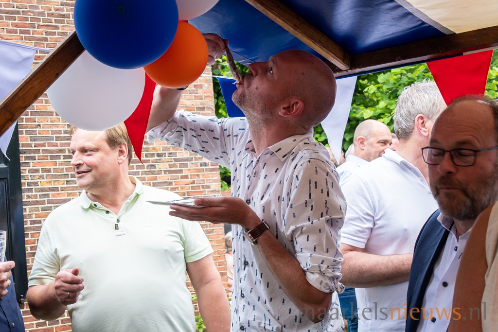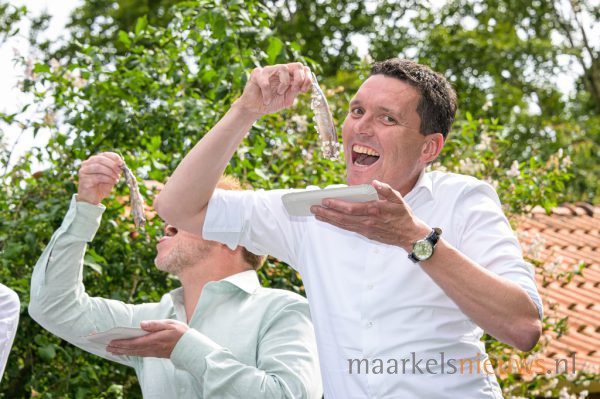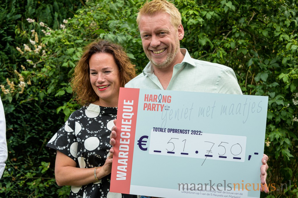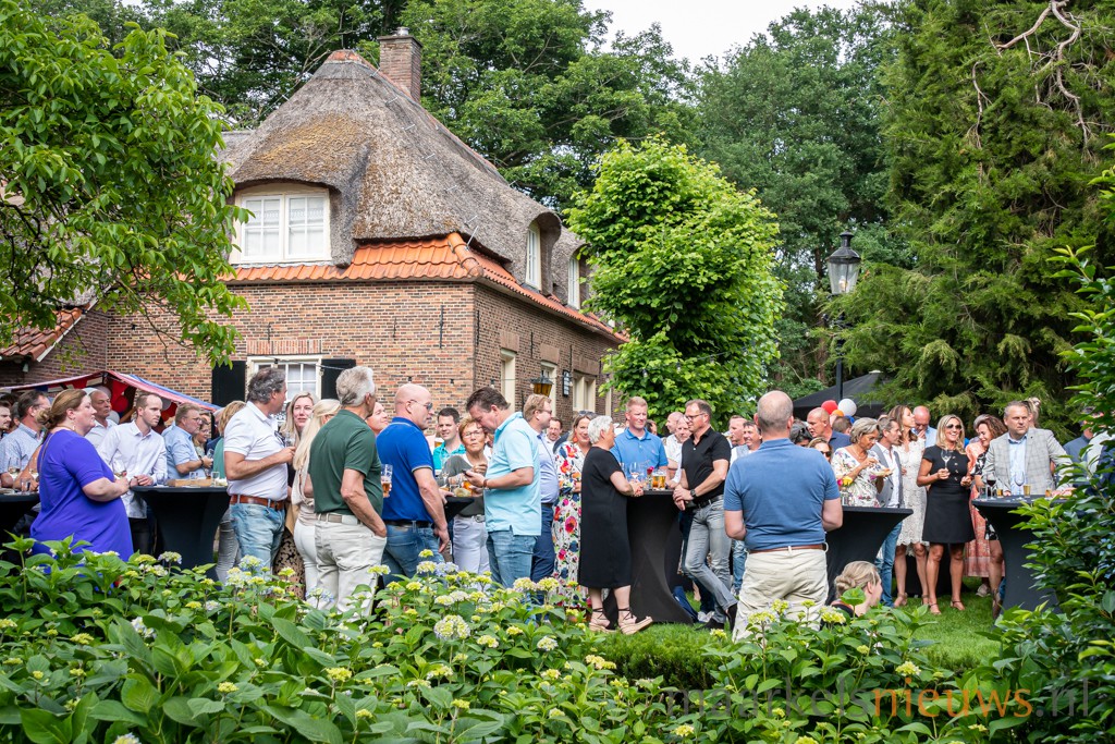 Op het zonovergoten terras bij Herberg de Pot werd vanmiddag de tweede editie van de Haringparty Hof van Twente gehouden. De vele ondernemers werden bij aankomst bij het netwerkevenement over de rode loper ontvangen met een glaasje bubbels. De Haringparty Hof van Twente was ook dit jaar gekoppeld aan een goed doel. Dit jaar werd geld ingezameld voor een uitkijktoren op één van de vijf Heuvels van Markelo voor de nog te ontwikkelen ‘Vijf Heuvels Belevings Wandelroute’. Wethouder Wim Meulenkamp hapte nog niet direct toe bij de opening van het evenement en gaf aan dat voor een dergelijke toren nog wel een vergunning benodigd zou zijn. Tijdens het evenement werd onder meer items geveild. Na afloop van de veiling kreeg één van de initiatiefnemers van de route, Jarno Vedders, een cheque van 51.750 euro overhandigd.