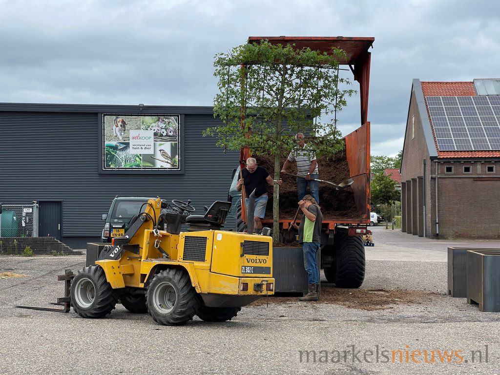 Vijftien flinke plantenbakken uitgevoerd in cortenstaal zijn vandaag door mankrachten van Klanderman Boomkwekerijen uit Halle aangeplant met verschillende soorten (lei)bomen en bodembedekkers. Dit karwei werd uitgevoerd op het Roggeplein waarna ervoor gekozen is om de bloembakken voorlopig bij elkaar te plaatsen naast het sport- en spelcircuit in de voormalige zoutbaden op het Kaasplein. Dit karwei pakte Assink Shovelverhuur aan het eind van de middag vakkundig op. Na het Dorpsfeest Markelo krijgen de bakken een definitieve plek op het Kaasplein. Ook wordt op dat moment de belijning door TWW aangebracht voor de nieuwe parkeervakken op het plein en wordt hiermee de opwaardering van het Kaasplein afgerond.