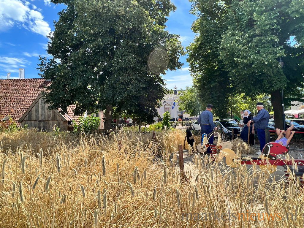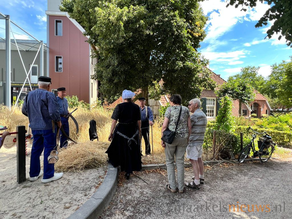 Afgelopen donderdagmiddag werd op traditionele wijze een klein perceeltje met rogge gemaaid. De rijpe rogge werd vakkundig met een zigt en pik gemaaid door de vrijwilligers van de museumboerderij. De klederdracht waarin de vrijwilligers aan het werk waren zorgden al voor mooie gesprekken aan de rand van het ‘land’. De bindsters bonden de rogge in garven. Een nostalgisch tafereeltje dat gevolgd werd door veel voorbijgangers. Donderdag 11 augustus wordt de rogge gedorst.