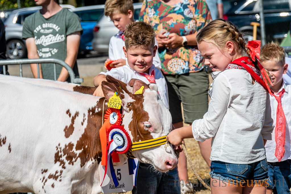 Onder de stralende zon werd er vandaag in de weide naast Sporthal De Haverkamp de 82e editie van de Fokveedag Markelo gehouden. De opzet was evenals bij de editie van 2021 kleiner, de KOC (Kalver Opfok Club) Markelo zorgde voor een mooi gevuld programma. Na de openingswoorden van Gerwin Nijenhuis en Thomas Noltus werd vanmorgen rond de klok van 10.00 uur gestart met de eerste keuringen van de kalfjes die werden getoond door de jeugd van 4 tot en met 12 jaar. Aansluitend werden de bedrijfsgroepen getoond aan de jury. Vanmiddag mochten de beste kalveren per rubriek nogmaals hun opwachting maken in het defilé en werden aansluitend de prijzen verdeeld.