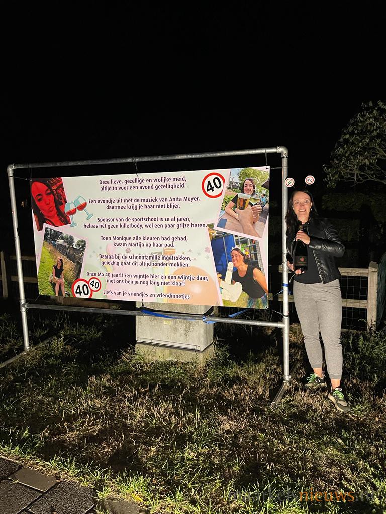 Monique dacht: “ik ga mijn verjaardag dit jaar niet vieren”. Maar daar dachten de vriendjes en vriendinnetjes toch anders over…. (Zie foto’s). Dus gisterenavond een spandoek neergezet en een varken in de tuin. Voor heel Markelo en omstreken goed te zien. Want de verjaardag van Monique mocht natuurlijk niet ongemerkt voorbij gaan. Monique; namens Tim, Evelyn, Lennart, Joanne, Mark, Noreen, Jeroen, Tessa, Edwin, May en Ilse: gefeliciteerd!
