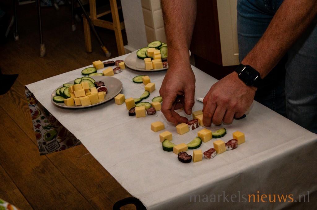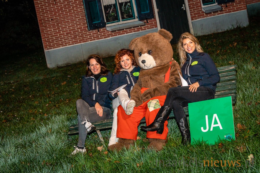 Na de korte introductie door Jan Henk Berendsen, greep Marjan Noteboom de microfoon, waarmee de Maarkelse Kwis écht was begonnen. De Kwis bracht de teams dit jaar weer naar mooie plekken en opdrachten in het dorp en daarbuiten. Teams moesten een foto van de bodem van het zwembad halen en een mystery guest ontmaskeren een deurtje verder, in de Kösterskoele.