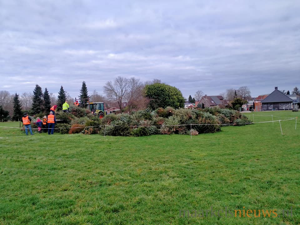 De start van de Maarkelse Boake is vanmorgen begonnen met het ophalen van de kerstbomen in het dorp. De bomen zijn alvast op de plek gelegd in de weide van Hargeerds aan de Zonneweg, waarmee de vrijwilligers een basis hebben gelegd voor de Maarkelse Boake die op eerste paasdag zal worden ontstoken. Voor het zover is zullen de bouwers nog het nodige werk moeten verrichten.