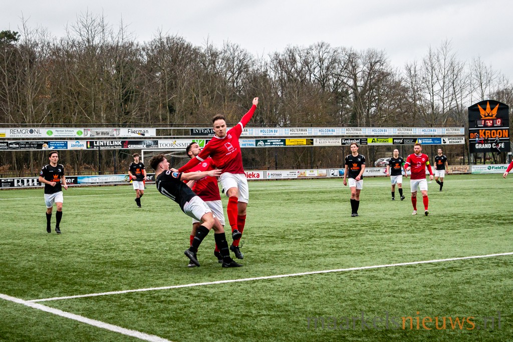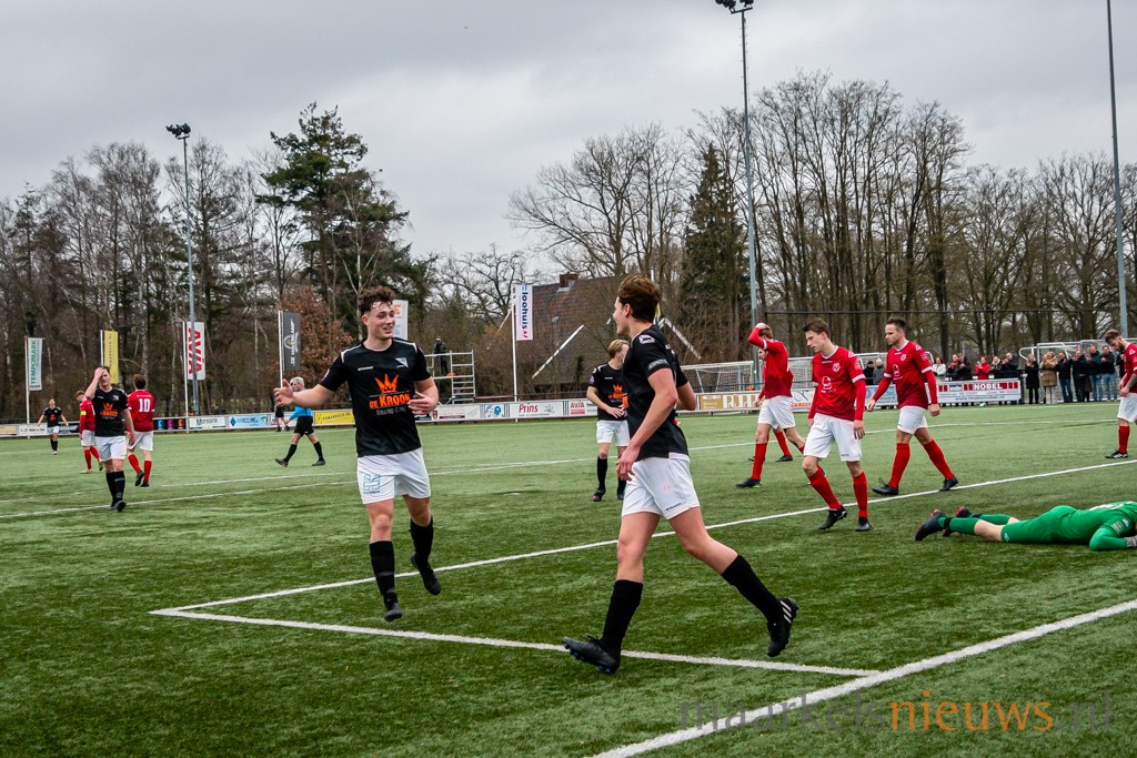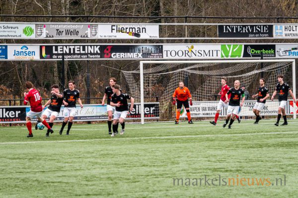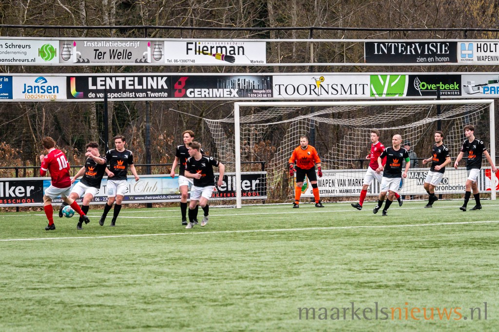 Na een uur spelen kwam die bevrijdende 1-0 voorsprong er uiteindelijk ook. Miquel Schippers wist, net als vorige week, weer te scoren. Op prachtig aangeven van Mickey Slotman was Schippers het eindstation en zorgde hij ervoor dat Sportclub Markelo op voorsprong kwam, 1-0. In de 78e minuut waren de rollen omgedraaid. Nu was het Mickey Slotman, die na lang blessureleed, voor de bevrijdende 2-0 zorgde. Dit keer was Slotman de doelpuntenmaker en Schippers de aangever. Het slotakkoord van de wedstrijd was enkele minuten later. Na een goede actie van René Kuijpers werd in eerste instantie het schot van Sam Warmelink nog geblokkeerd, maar was Marcio Kok attent genoeg om de 3-0 binnen te schieten. Zo boeken de zwart-witten een dik verdiende overwinning en kan het drie belangrijke punten bijschrijven. De volgende competitiewedstrijd voor Sportclub Markelo duurt nog eventjes. Want op 5 maart komen de zwart-witten pas weer in actie. Men gaat dan op bezoek bij Turkse Kracht.