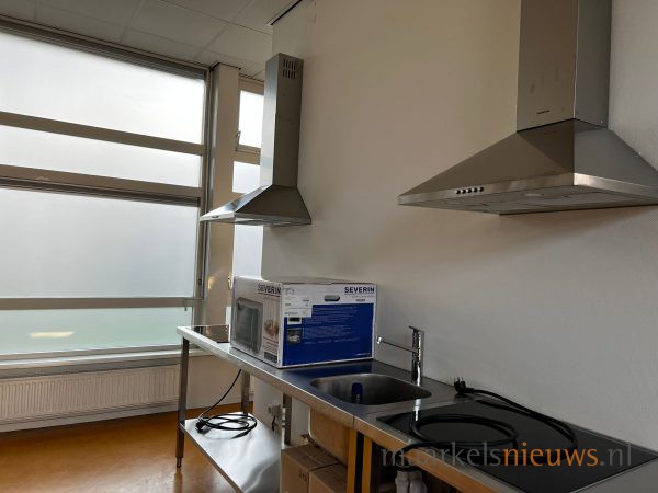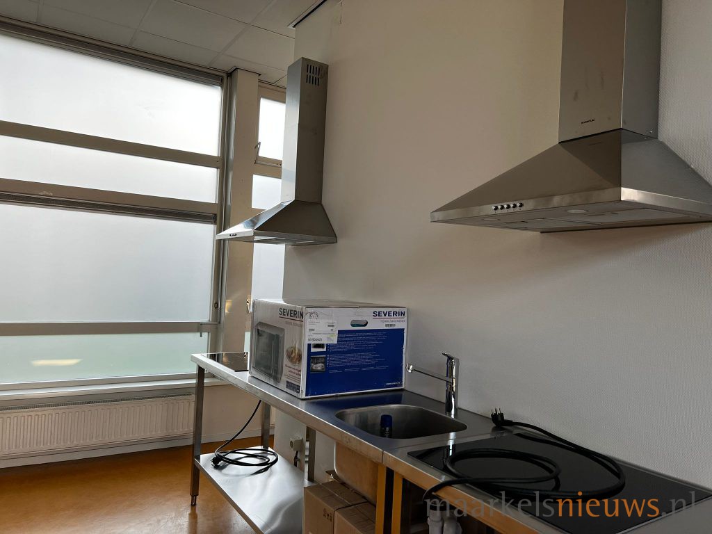 De afgelopen weken is er veel gebeurd in het voormalige schoolgebouw. Er zijn onder meer wanden geplaatst waardoor afzonderlijke slaap/leefruimten zijn ontstaan. Een voormalig klaslokaal is omgetoverd tot keuken waar gezinnen afzonderlijk hun eigen maaltijden kunnen bereiden. De wasruimte is voorzien van wasmachines. De aula heeft de functie van verblijfsruimte gekregen waar de mensen elkaar kunnen ontmoeten.