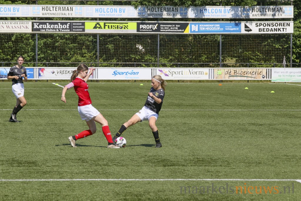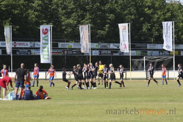 Sportclub Markelo was gisteren één van de locaties waar Final Leaque wedstrijden werden gespeeld, een nieuw idee van de KNVB, waarmee de laatste competitie fase van het dames competitie voetbal in toernooi vorm werd afgesloten. Ondanks een aantal afzeggeningen, kan de organisatie van de Markelose voetbal vereniging terugkijken op een zeer geslaagde dag. Opnieuw waren veel vrijwilligers in touw om alles zo goed mogelijk te laten verlopen. En dat lukte uiteindelijk naar volle tevredenheid van alle deelnemende teams.