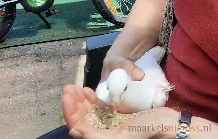 Bovenstaande tamme witte duif is gisteren geland op de Traasweg. De duif zonder ring eet uit de hand. Mocht iemand de duif herkennen als die van hem of haar, dan vernemen we dat graag via klepperderk@maarkelsnieuws.nl. UPDATE: De duif is weer terecht.