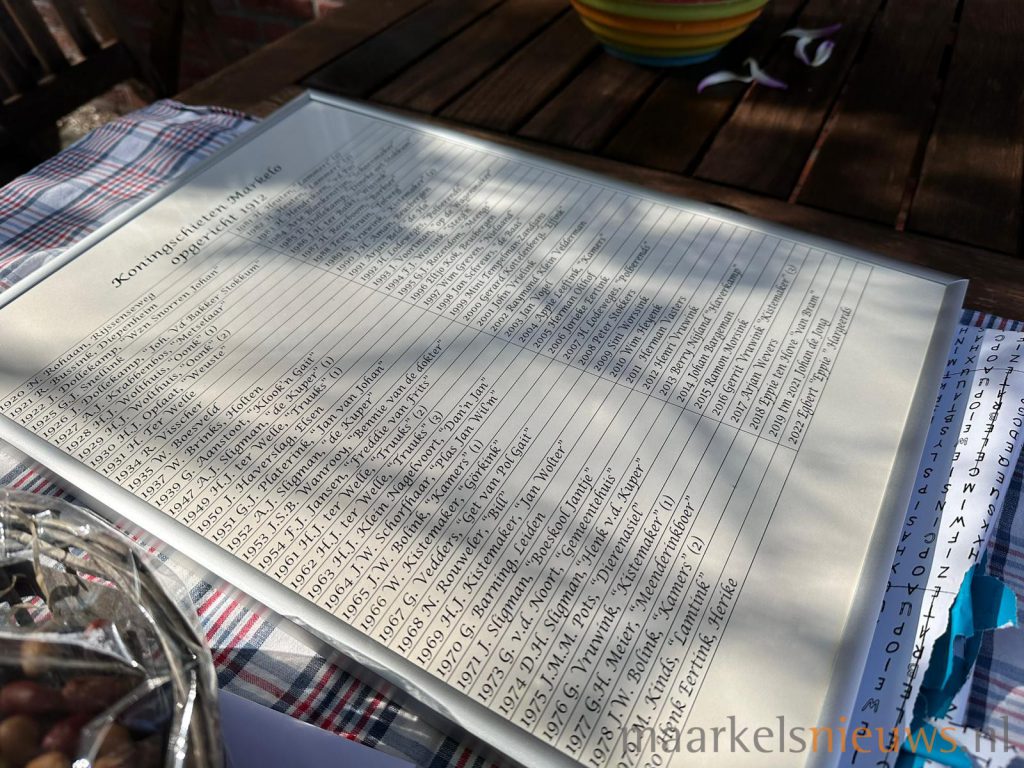 Vanmorgen rond 9.30 uur verzamelden familie, buren, kameraden en vrienden van Schutterskoning Egbert Hargeerds zich op het erf in de Achterhoek. De regerend Schutterskoning werd voorafgaand aan het vogelschieten volgens traditie door de vogelschietcommissie vergezeld door De Grösmeijers thuis opgehaald. Speciaal voor het vogelschieten blijven De Biscaya’s eens per jaar De Grösmeijers. Egbert kreeg vanmorgen uit handen van voorzitter Karin Potman van de vogelschietcommissie een bos bloemen en een lijst met alle namen van de Schutterskoningen tot en met 2022. Egbert was vorig jaar zo verheugd met het behalen van de titel dat hij een vreugdesprong maakte. Egbert: “Hopelijk mag de nieuwe koning net zo genieten van het koningschap als ik dat heb gedaan”. Hierop reageerde Gerry: “Het wordt een koningin”. Of het een schutterskoning of schutterskoningin gaat worden zal vanmiddag moeten blijken, zeker is wel dat Egbert het eerste schot gaat lossen.
