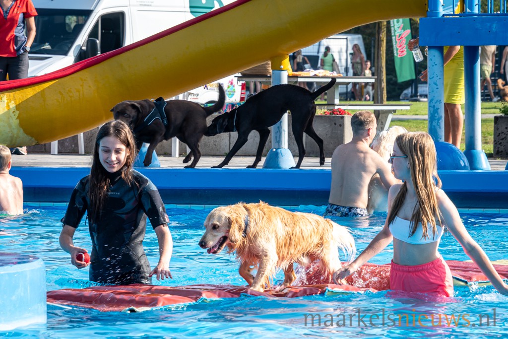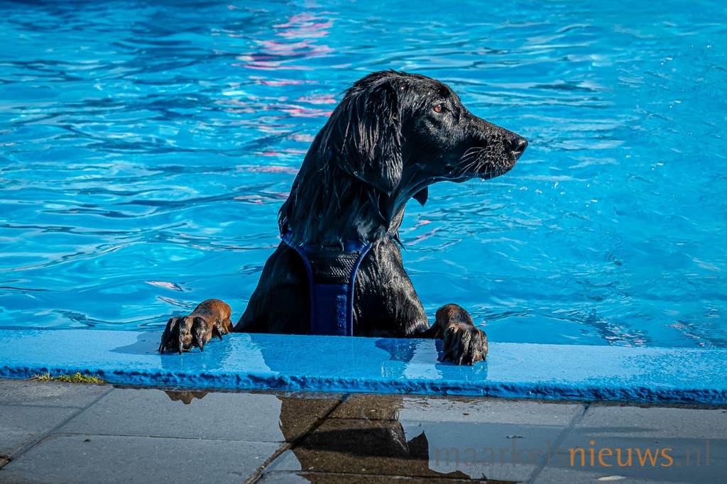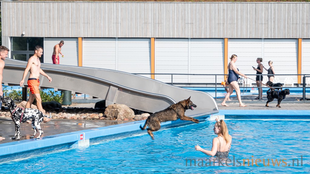 “Wat niet iedereen weet is dat we speciaal voor de Doggyplons de concentratie chloor naar beneden draaien. Na dit geweldige waterfestijn voor de honden laten we het buitenbad leeglopen en wordt het schoongemaakt en hopen we volgend jaar op weer een mooi buitenseizoen voor het Markelose zwembad”, vertelt Freek.
