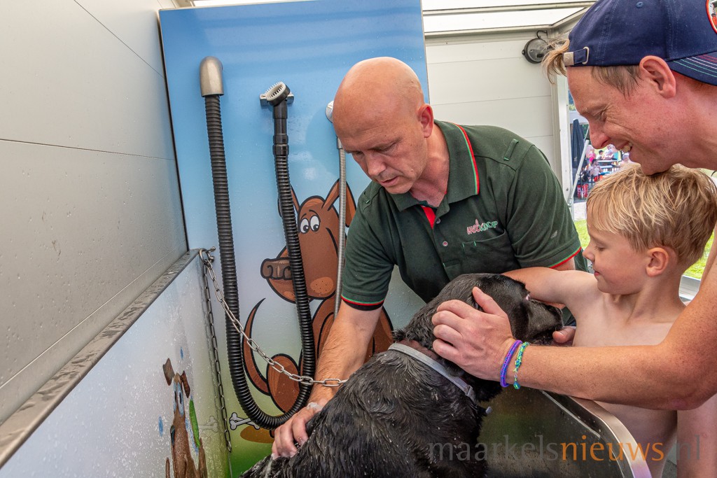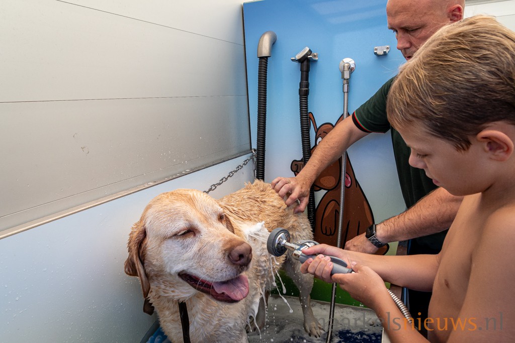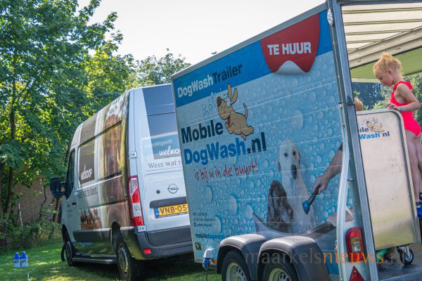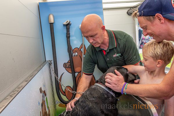 In en rond het zwembad genoten de honden en een groot aantal waagden enthousiast een sprong in het zwemwater. Van het pierebadje tot aan het ‘diepe bad’ waren het vanmorgen de viervoeters, groot en en klein die een nat pak haalden met en zonder hun baasje(s). Een speciale loopplank zorgde ervoor dat de honden makkelijk het zwembad in en uit konden lopen. Voor de durfals lag een mat in het water. In het diepe bad konden de baasjes suppen met hun hond. Na het zwemfestijn was het mogelijk om de hond te (laten) wassen en drogen in de Mobile Dogwash, een service die Welkoop Markelo aanbood waardoor de honden weer fris en fruitig huiswaarts konden gaan.