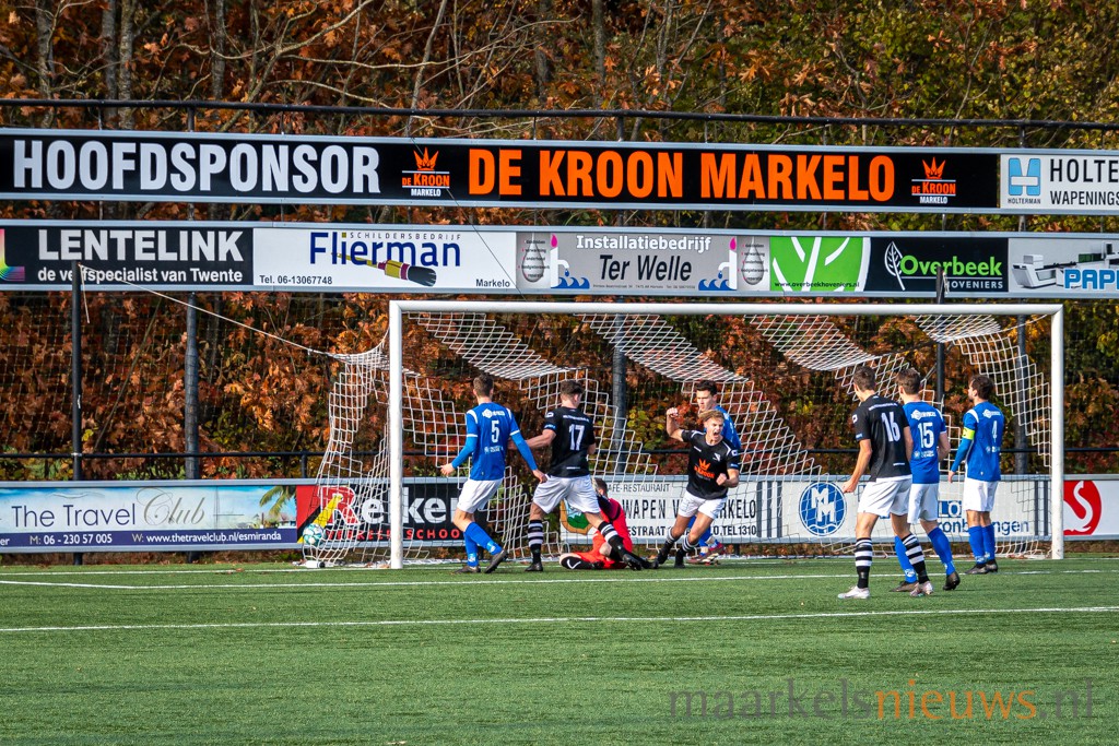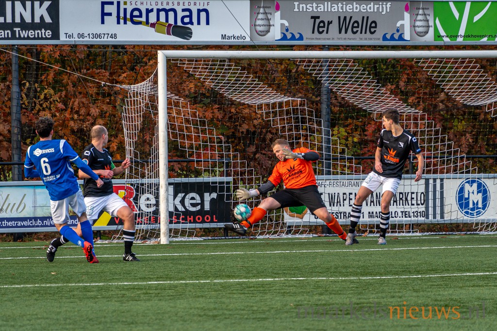 Sportclub Markelo heeft vanmiddag zijn vierde overwinning op rij geboekt. Aan de Endemansdijk werd SC Westervoort met 3-2 verslagen. In een gelijk opgaande wedstrijd was het Sportclub Markelo dat de eerste tik uit deelde. Na een kwartier spelen zette Joris Slaghekke, uit een vrije trap van Ton Jansen, de 1-0 op het scorebord. In het verdere verloop van de wedstrijd gebeurde er niet veel. Sportclub Markelo was iets beter dan de gasten uit Westervoort maar creëerde niet heel veel kansen. Hierdoor ging de thuisploeg uiteindelijk met een 1-0 voorsprong ging rusten. Ondanks het feit dat de eerste helft niet spectaculair was kwam daar direct na rust verandering in. De ploeg van Thijs Houwing kwam erg slecht uit de kleedkamer. In een tijdsbestek van drie minuten wist SC Westervoort de wedstrijd helemaal om te draaien. Eerst maakte Stan van den Maassen in de 47e minuut de 1-1 waarna Mounir Amezrine in de 49e minuut zijn ploeg op een 1-2 voorsprong wist te zetten.
