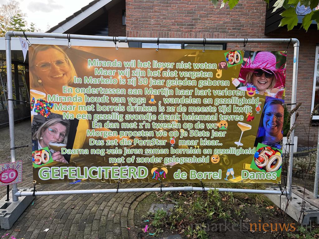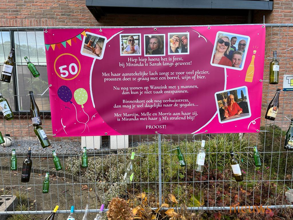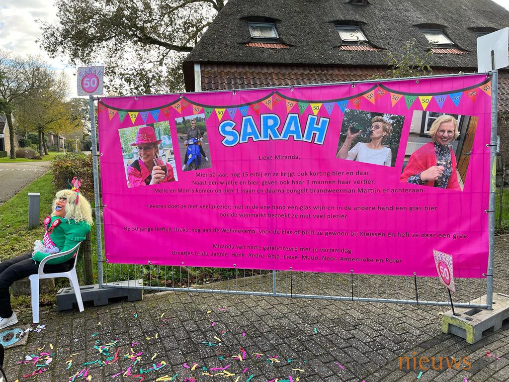 Gisteren is Miranda Kloots-Geerligs 50 jaar geworden. Zaterdagavond was het al zeer gezellig aan het Wansink. Meerdere spandoeken en Sarah’s werden geplaatst door familie en vrienden. Nadat de Sarah’s uitgebreid gekeurd waren werd er natuurlijk op geproost. Zondagmiddag werd bij de Poppe de verjaardag nogmaals flink gevierd. Miranda; namens de familie nogmaals van harte gefeliciteerd met 50e verjaardag!