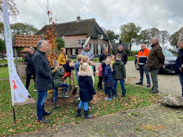 Tot dit jaar werd de Nationale Boomfeestdag op de derde woensdag in maart gehouden, maar omdat het in het voorjaar steeds droger werd is vanaf 2023 besloten de Nationale Boomfeestdag te verplaatsen naar de derde woensdag in november. Dat is het vandaag. In bijzijn van de kinderen van groep 4 en 5 van Obs Stokkum, buren en sponsoren heeft wethouder Harry Scholten vandaag een rode beuk geplant in ‘het Ulkeneind’ in het kader van Verbindend Groen Stokkum. De wethouder prees de hulp van de kinderen bij het planten van de boom en nodigde de kinderen uit om de boom te koesteren en in de toekomst trots te zijn dat ze mee hebben geholpen bij het planten van de boom.