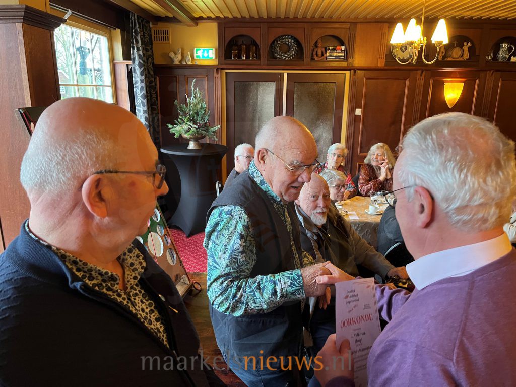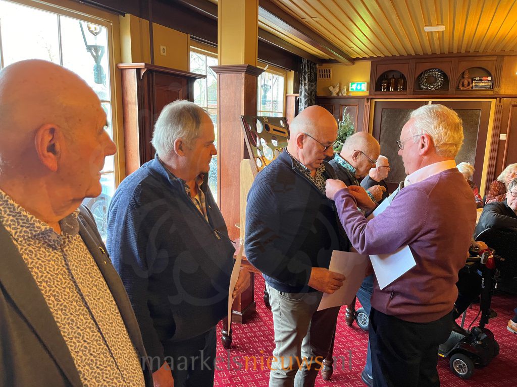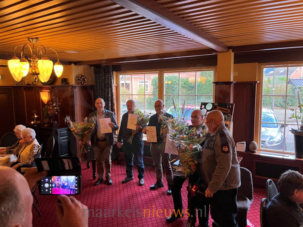 In de Oranjezaal van De Haverkamp heeft het bestuur van het Markelo’s Mannenkoor recentelijk een vijftal jubilarissen in het zonnetje gezet tijdens haar Nieuwjaarsbijeenkomst. Zo zijn Jan Welmer, Joop Volkerink, Henk Leeftink en Gerrit Leeftink gehuldigd voor hun 25-jarig lidmaatschap en Willem Niessink voor zijn 15-jarig jubileum. Tijdens de gezellige bijeenkomst werden ook de data voor de concerten in 2024 bekend gemaakt. In juni 2025 staat het jubileumconcert op de agenda in het teken van het 55-jarig bestaan van het Markelo’s Mannenkoor.
