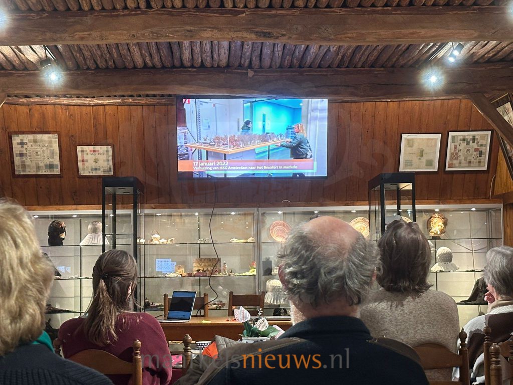 Milena vertelde dat het drie jaar geduurd heeft om een definitieve plek te vinden voor de maquette. Het Rijksmuseum in Amsterdam raakte geïnteresseerd in de maquette na het beluisteren van de podcast Maquette zonder verblijfsvergunning. Vele gesprekken hierna, hebben er toe geleid dat de maquette is aangekocht door het Rijksmuseum waardoor dit kunstobject als Nederlands erfgoed is aangemerkt. De maquette is gebouwd in 2011 door Karen in Markelo. De aanwezigen weten nog goed dat Karen hiermee bezig was en delen veel herinneringen aan die tijd. Milena: “Het object is uniek en heeft een historische waarde en betekenis voor Nederland gekregen. Het roept bij heel veel mensen speciale gevoelens op. Dat laatste is misschien ook wel de reden dat Karen vanavond niet hier in Markelo is”.