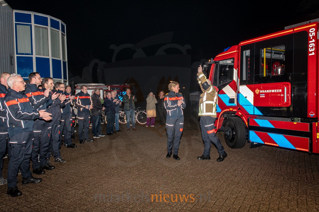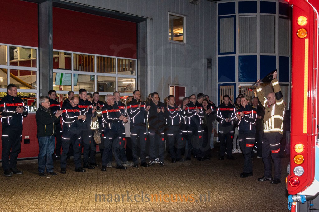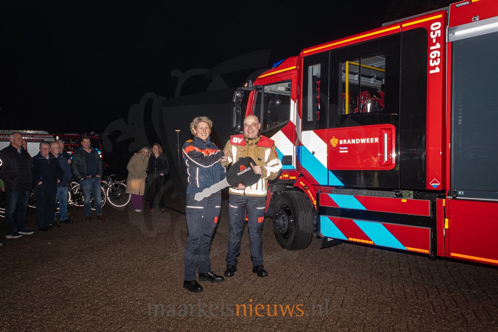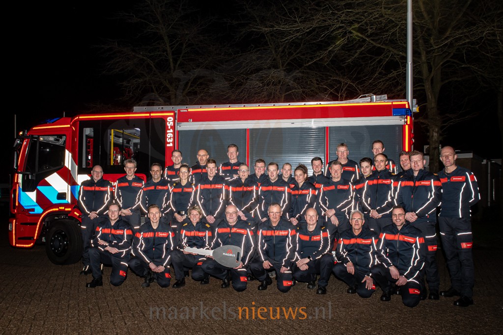 Vanavond heeft de korpsleiding van Brandweer Twente op feestelijke wijze een nieuw brandweervoertuig (TS 1631) overgedragen aan de korpsleden van Brandweer Markelo. Bij aankomst van het nieuwe brandweervoertuig werd deze met een rode fakkelgloed ontvangen op het terrein van de brandweerkazerne aan de Schoolstraat in Markelo. “Dit nieuwe voertuig is voorzien van de nieuwste technieken en materialen waardoor wij veilig kunnen werken. Daarnaast zijn alle TS’en in Twente nu uniform, waardoor de voertuigen ook makkelijk uit te wisselen zijn”, vertelt kazernecoördinator Martijn Kloots. Deze avond werd eveneens aangegrepen om het korps in een nieuw tenue te steken en te voorzien van nieuwe pagers. De brandweerkazerne in Markelo telt 28 vrijwilligers en heeft jaarlijks zo’n 60 uitrukken.