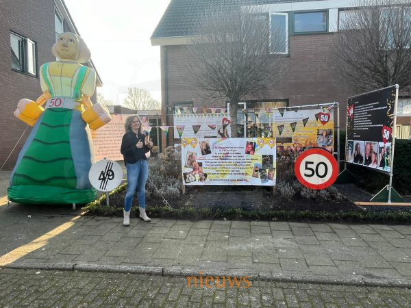 Vandaag wordt Jolanda Sligman 50 jaar. Gisteravond werd de tuin versierd met een mega-Sara en vele spandoeken. Dit werd uitgebreid gekeurd door Jolanda en een lekker borreltje mocht daarbij niet ontbreken. Daarna bleef het binnen nog lang gezellig, uiteraard onder het genot van lekkere hapjes en drankjes. Jolanda, namens familie, vriendinnen en buurtjes van harte gefeliciteerd met je 50e verjaardag!