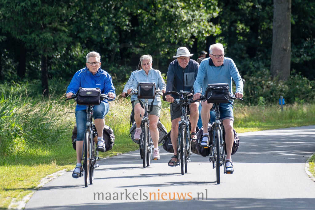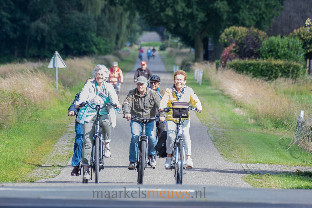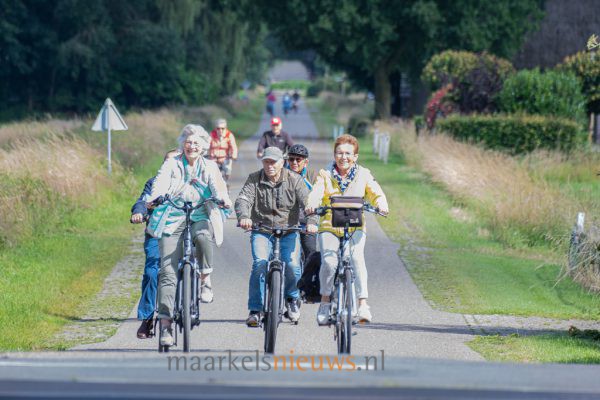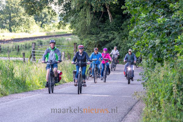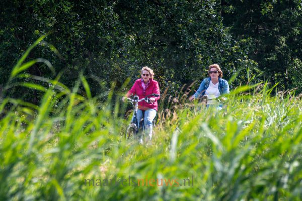 Na een natte start van de fietsvierdaagse werden de deelnemers vandaag getrakteerd op een zonnige tweede dag met Hollandse luchten van het fietsevenement. De routes bracht de fietsers vandaag langs de Schipbeek in het Stokkumsebroek, langs het Twentekanaal richting Lochem. De routebordjes leidde de deelnemers langs Kasteel Ampsen terug richting Markelo. “We geven de organisatie een dikke pluim! Naast de goed georganiseerde routes en de mooie omgeving hebben ze gisteren een leenfiets geregeld voor ons omdat we een lekke band hadden. De fiets is voorzien van een nieuwe band en vanmorgen konden we hem weer gebruiken. Wat we helemaal geweldig vinden is dat onze fietsen vlak bij het start- en finishpunt kunnen worden gestald na de route zodat we niet elke dag met de fietsen op de auto vanuit Eibergen naar Markelo hoeven rijden. De service is geweldig!”, vertelde een deelnemer vanmiddag.