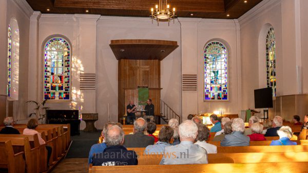 Jan Lonink zei gretig “ja” op de vraag vanuit de activiteitencommissie van de Martinuskerk om één van de gasten te zijn in een serie gesprekken met oud-Markeloërs. Vanavond was het zover en hij had er zelfs een feestelijke mosselparty voor laten schieten om terug te keren naar zijn vroegere dorpsgenoten. Met gespreksleider Jan Henk Berendsen nam Lonink zijn ongeveer 50-koppige gehoor mee in zijn leven, dat in 1951 begon in Markelo en hem leidde naar zijn huidige woonplaats Philippine, een dorp dat hoort bij de Zeeuwse gemeente Terneuzen. Openhartig vertelde hij over zijn jeugd in Markelo waarin hij al vroeg zijn vader verloor en toonde veel waardering voor zijn moeder die er alleen voor zorgde dat Jan en zijn broer Gerard een goede opleiding konden volgen.