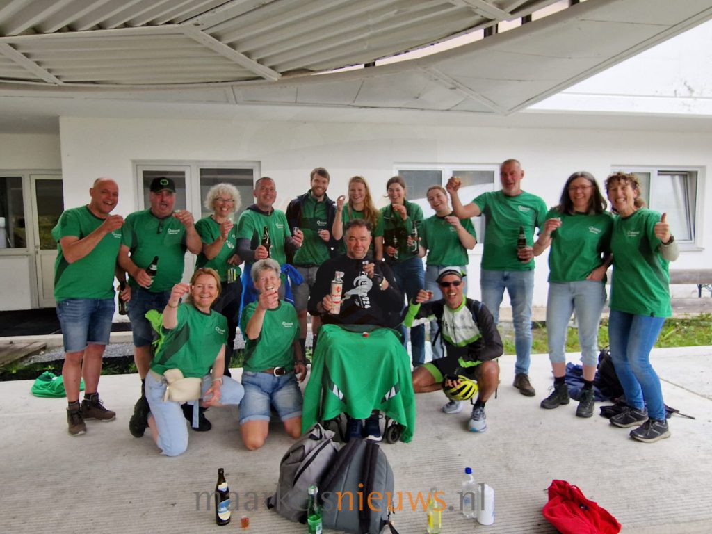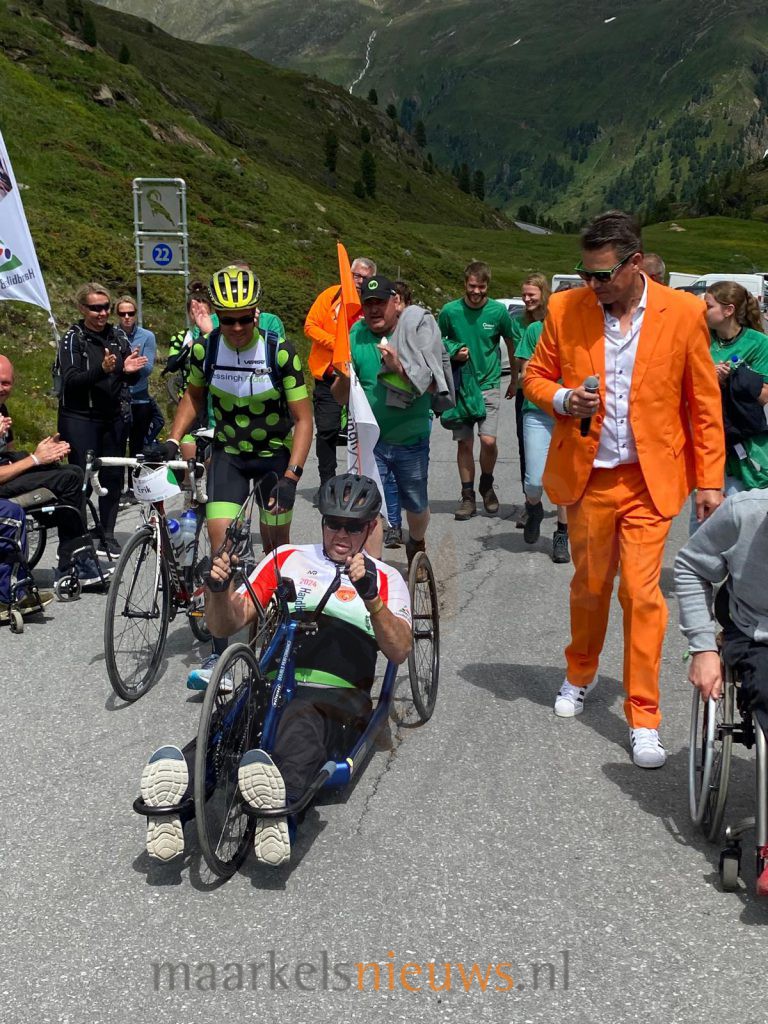 Erik bereikte zijn streefbedrag binnen een week, met hulp van familie, vrienden en kennissen. En toen maar trainen…. samen met het team van Roessingh Riders en hun buddy’s. Als deelnemer mag je alleen met een buddy naar boven fietsen. De buddy mag niet in een handbike fietsen omdat hij dan niet snel genoeg kan ingrijpen als dat nodig is.