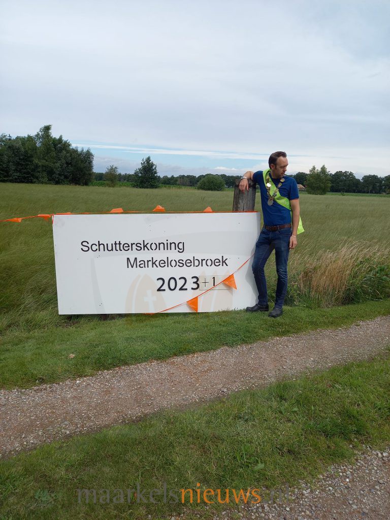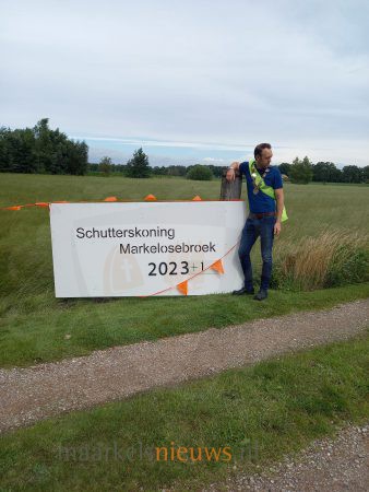 Traditiegetrouw staat Markelosebroek in het eerste weekend van juli in het teken van het Brookfeest. Gisteravond werden de Schuttersprinses en Schutterskoning thuis opgehaald in een mooie old timer. Dat ging vanzelfsprekend gepaard met een meutmoment onderweg waardoor ze maar krap op tijd bij de tent aan kwamen om daar het eerste schot te lossen. Schutterskoning Ruben had het bij het ophalen al aangekondigd: “als ik de kans krijg schiet ik de vogel er gewoon weer af”. En jawel het lukte. Met een voltreffer viel de vogel naar beneden waardoor Ruben zijn titel van schutterskoning nogmaals een jaar mag dragen.