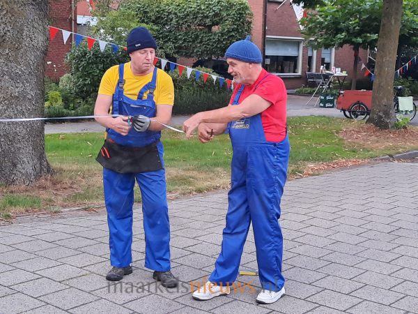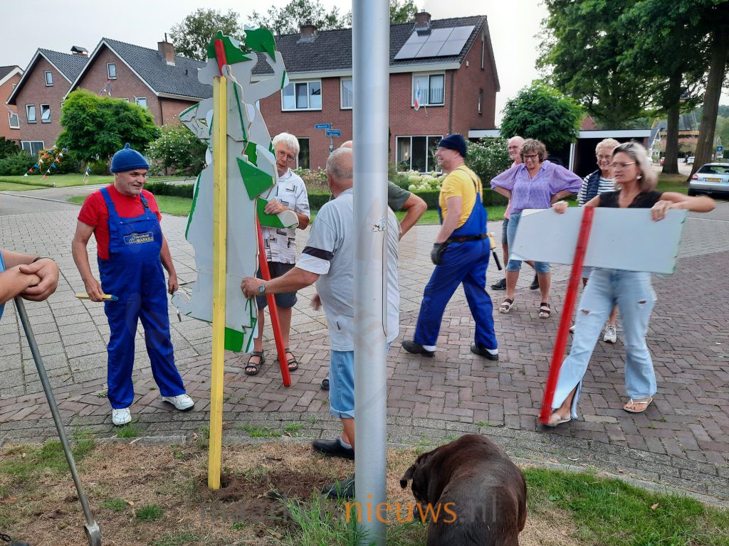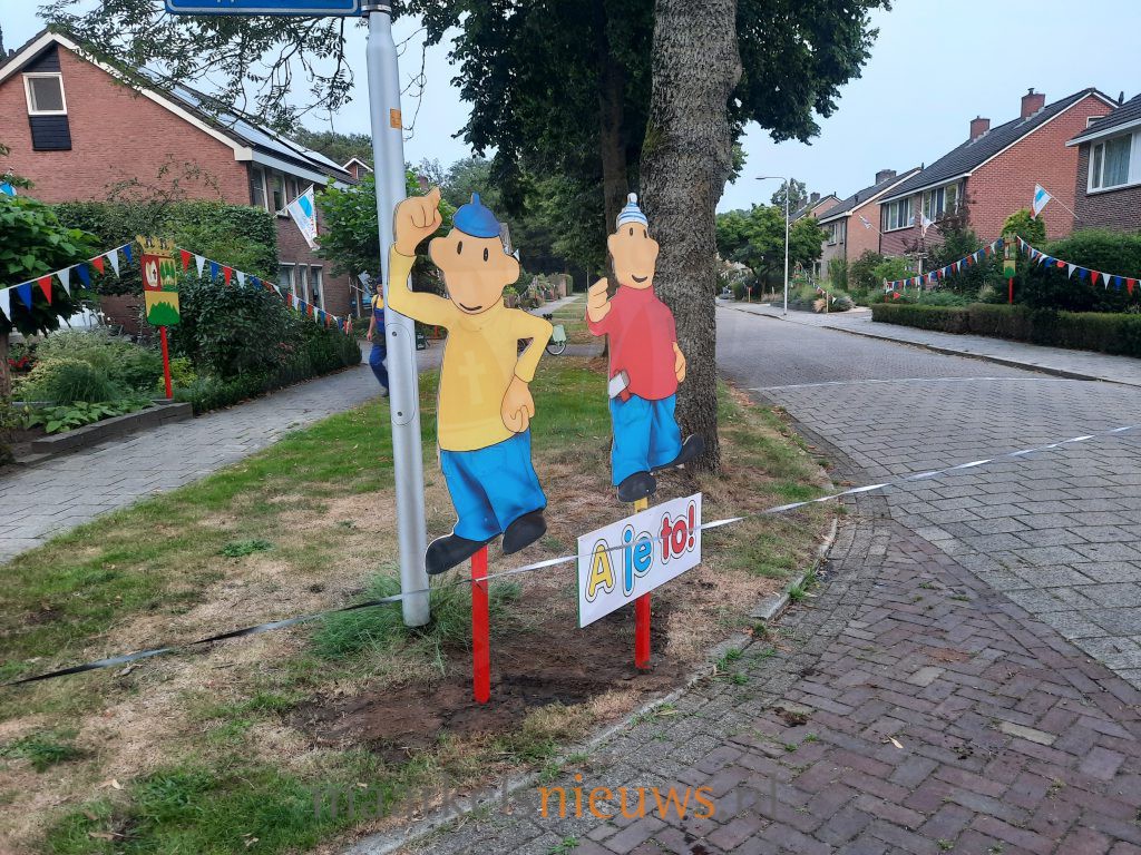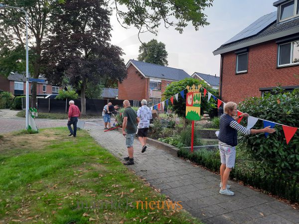 Maandag voor het Dorpsfeest Markelo plaatsen de bewoners van Beusbergen traditioneel de straatversieringen. De straatversiering is dit jaar vernieuwd met een Buurman & Buurman bord. Bij elke woning staat nu een buurman die de vlaggetjes verbind met het bord met het wapen van Markelo. De Markelose Buurman & Buurman kwamen de versieringen inspecteren. Volgens Markelose traditie werd de boel goed nat gemaakt.
