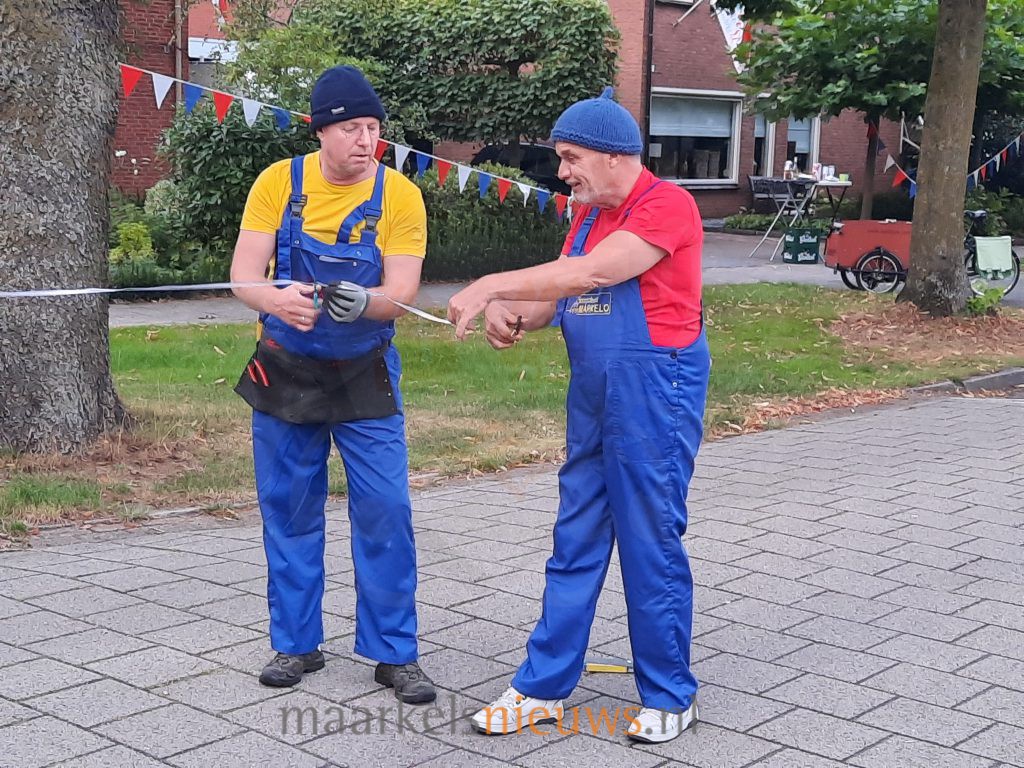 Maandag voor het Dorpsfeest Markelo plaatsen de bewoners van Beusbergen traditioneel de straatversieringen. De straatversiering is dit jaar vernieuwd met een Buurman & Buurman bord. Bij elke woning staat nu een buurman die de vlaggetjes verbind met het bord met het wapen van Markelo. De Markelose Buurman & Buurman kwamen de versieringen inspecteren. Volgens Markelose traditie werd de boel goed nat gemaakt.