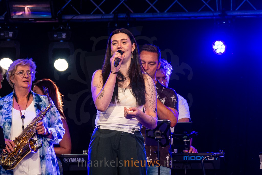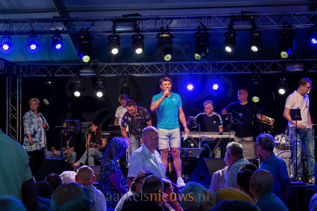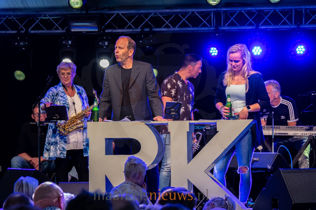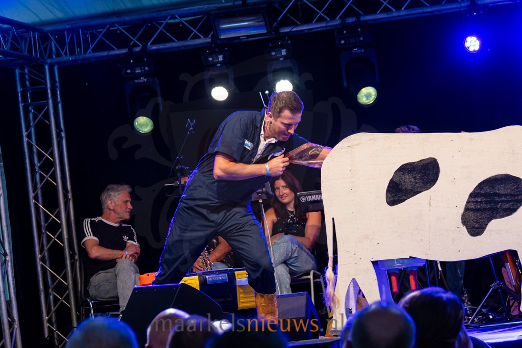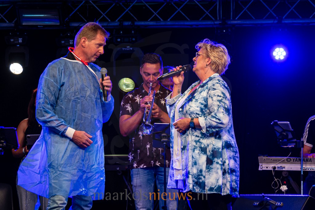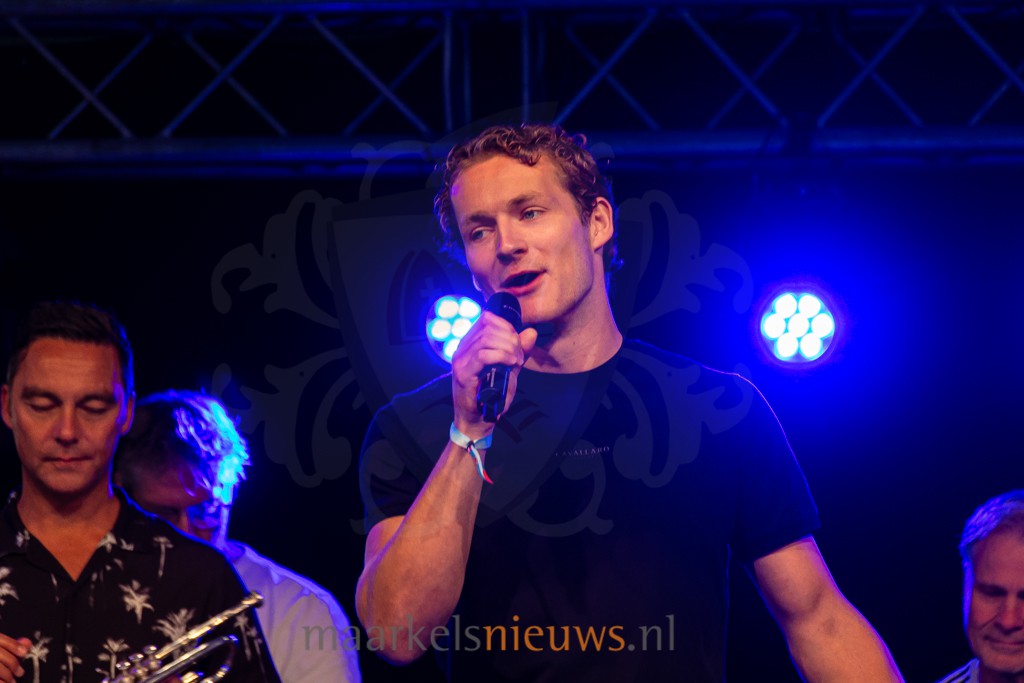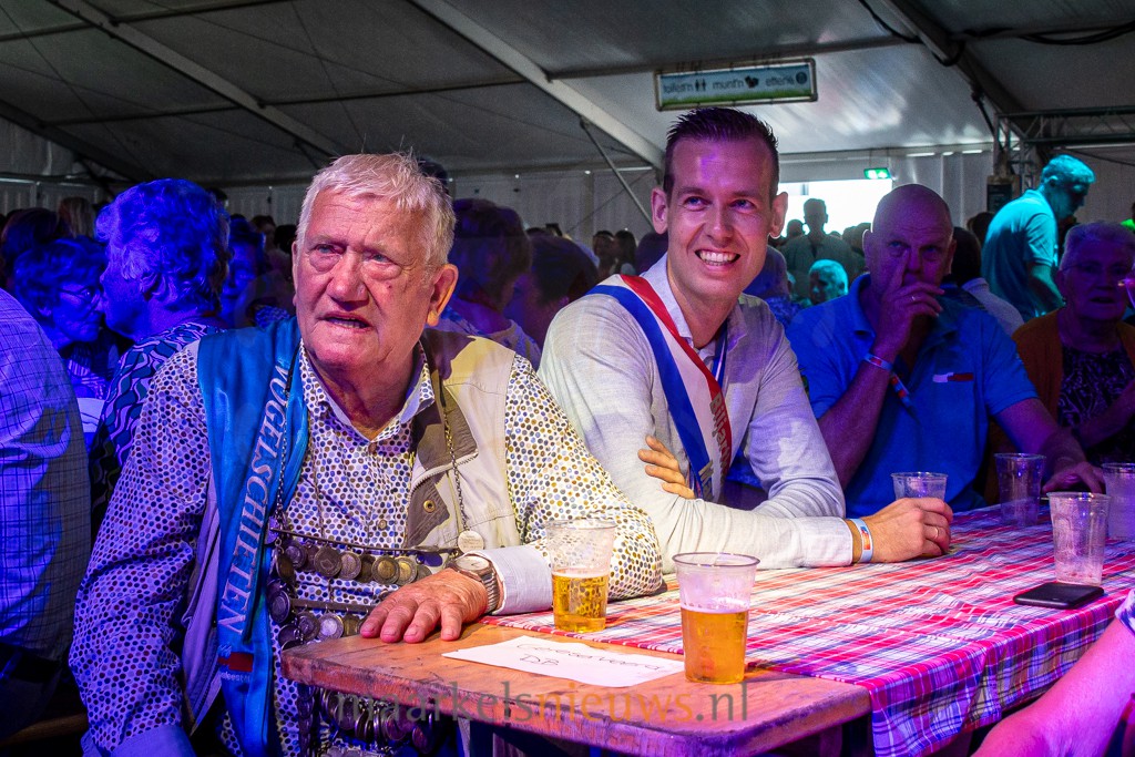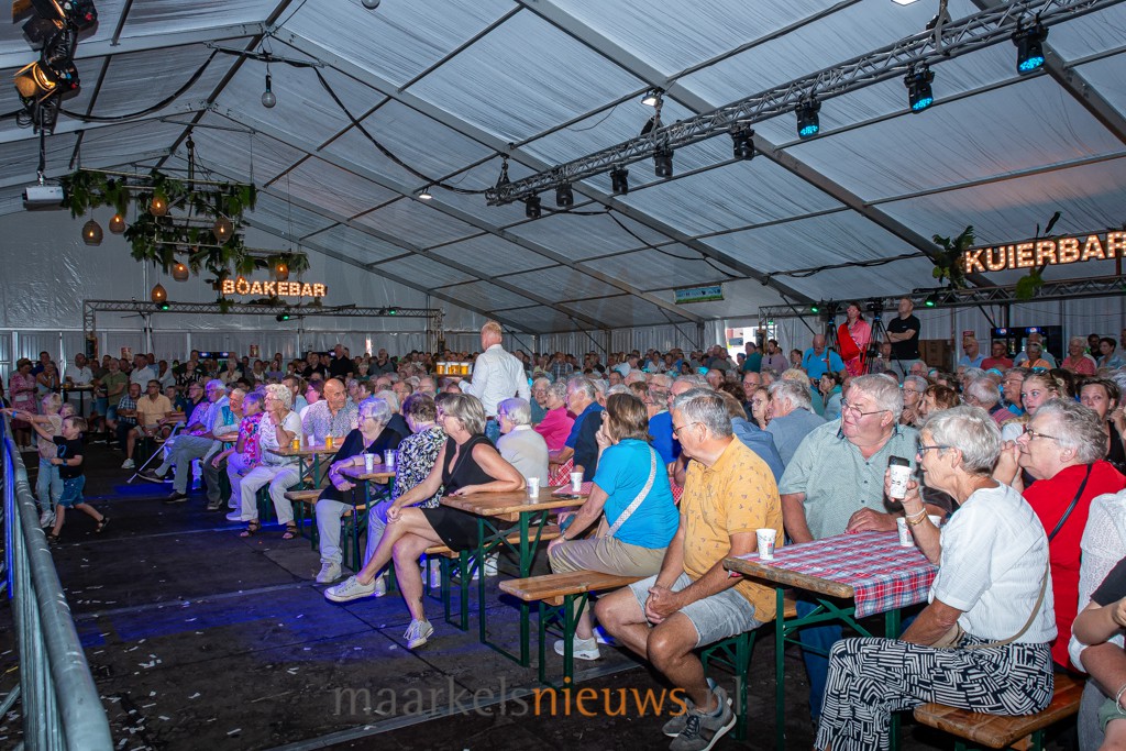 Een volle tent op het Dorpsfeestplein werd vanmorgen tijdens het früshoppen vermaakt door zangers, zangeressen en grappenmakers. Rinus Meulman en Kylie Karsenberg trapten het programma vanmorgen af met een Markelose editie van Even tot Hier. Ze namen Markelo op ludieke wijze op de hak met tekst en muziek. Na een muzikaal blok was het podium vervolgens voor Christiaan Mensink die Markelo vanaf een Italiaanse berg een spiegel voorhield. Na het tweede muzikale blok was het de vuurdoop voor het duo plus (Henry Blankhorst) en min (Peter van den Akker) met een sterk eerste optreden tijdens het frühshoppen. Het programma werd afgesloten met een muzikaal blok.