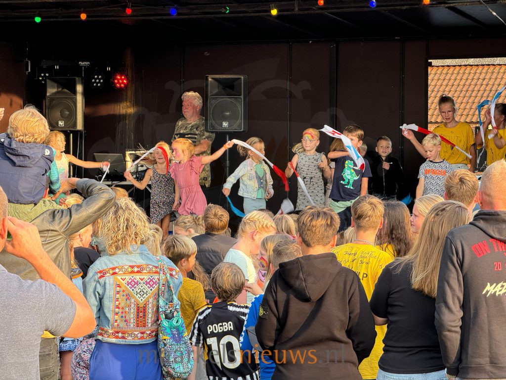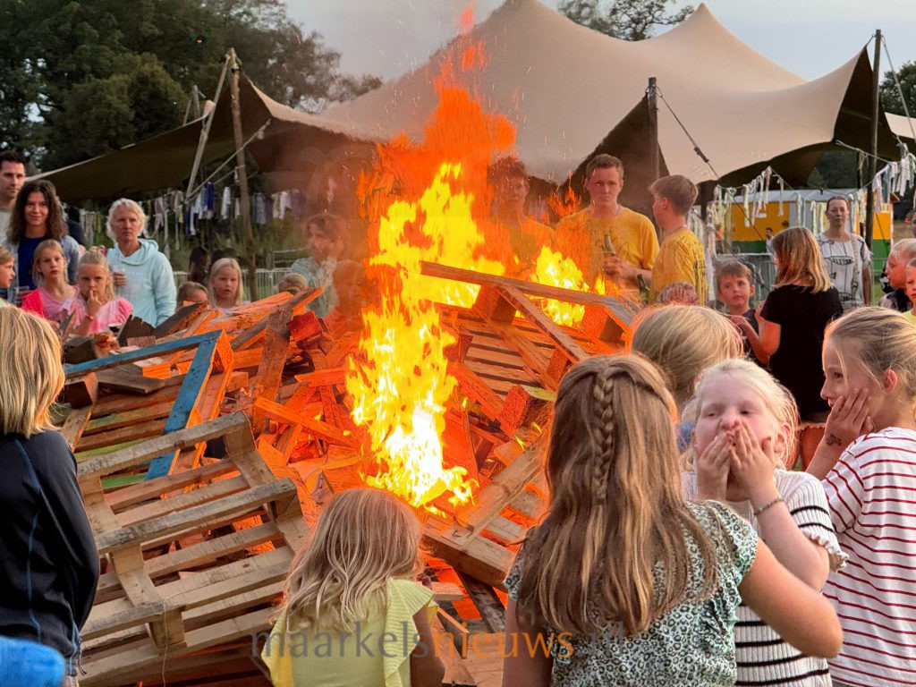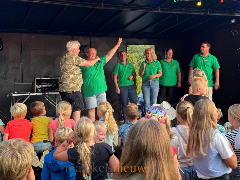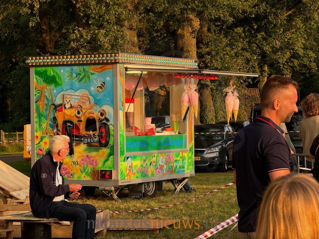 Een van de hoogtepunten van de dag was de hutteninspectie door niemand minder dan Buurman en Buurman. Zij bekeken de bouwsels met een kritisch oog, maar ook met een flinke dosis humor. Hut 9/10 kreeg complimenten voor de verbeterde stabiliteit, maar hutje 2 stal uiteindelijk de show en werd benoemd tot favoriet. Om 14.30 uur was het tijd voor de kinderen om naar huis te gaan, maar de deelnemers van Alldrik Zorgboerderij kregen de kans om nog even te genieten van het springkussen tot 16.00 uur. ’s Avonds werd Houtdorp 2024 officieel afgesloten met een gezellige avond vol muziek, popcorn, suikerspinnen en verfrissende drankjes. Diverse groepen kinderen traden op en lieten hun creatieve talenten zien. De avond werd afgesloten met een kampvuur, onder toezicht van Brandweer Markelo.