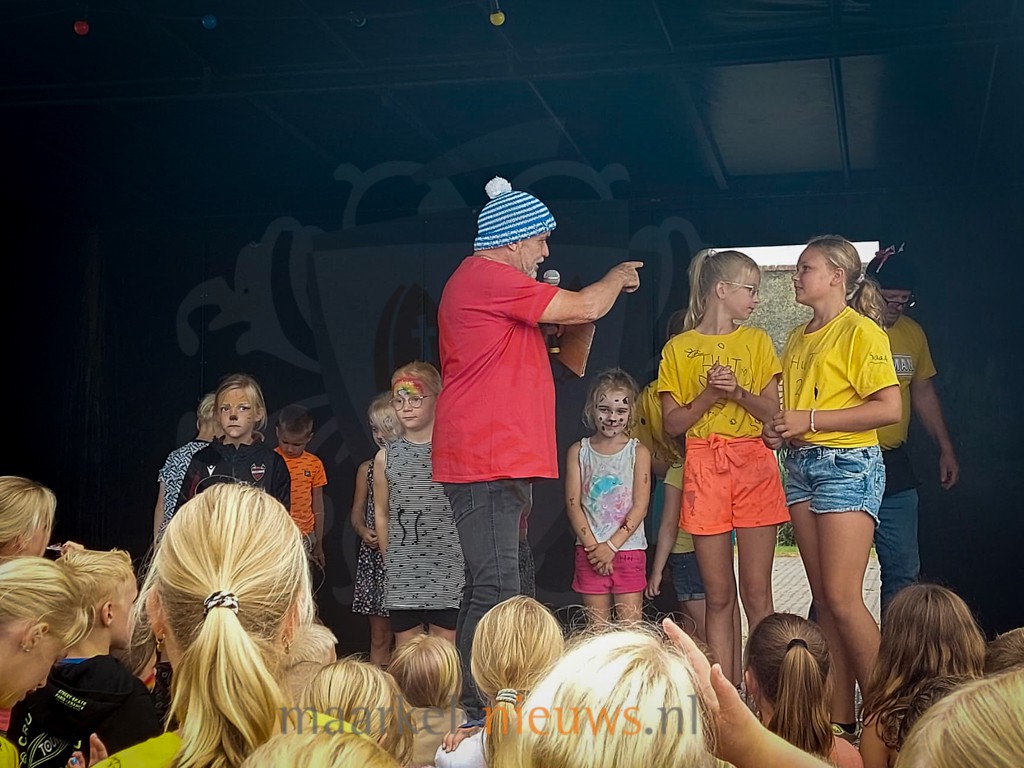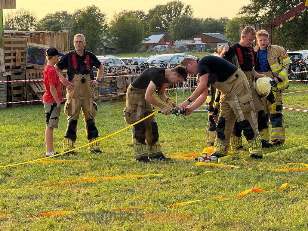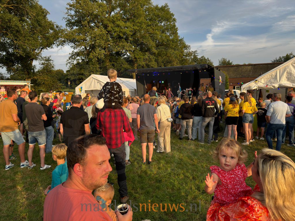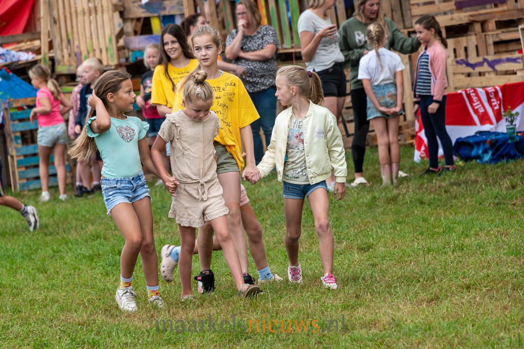 Een van de hoogtepunten van de dag was de hutteninspectie door niemand minder dan Buurman en Buurman. Zij bekeken de bouwsels met een kritisch oog, maar ook met een flinke dosis humor. Hut 9/10 kreeg complimenten voor de verbeterde stabiliteit, maar hutje 2 stal uiteindelijk de show en werd benoemd tot favoriet. Om 14.30 uur was het tijd voor de kinderen om naar huis te gaan, maar de deelnemers van Alldrik Zorgboerderij kregen de kans om nog even te genieten van het springkussen tot 16.00 uur. ’s Avonds werd Houtdorp 2024 officieel afgesloten met een gezellige avond vol muziek, popcorn, suikerspinnen en verfrissende drankjes. Diverse groepen kinderen traden op en lieten hun creatieve talenten zien. De avond werd afgesloten met een kampvuur, onder toezicht van Brandweer Markelo.