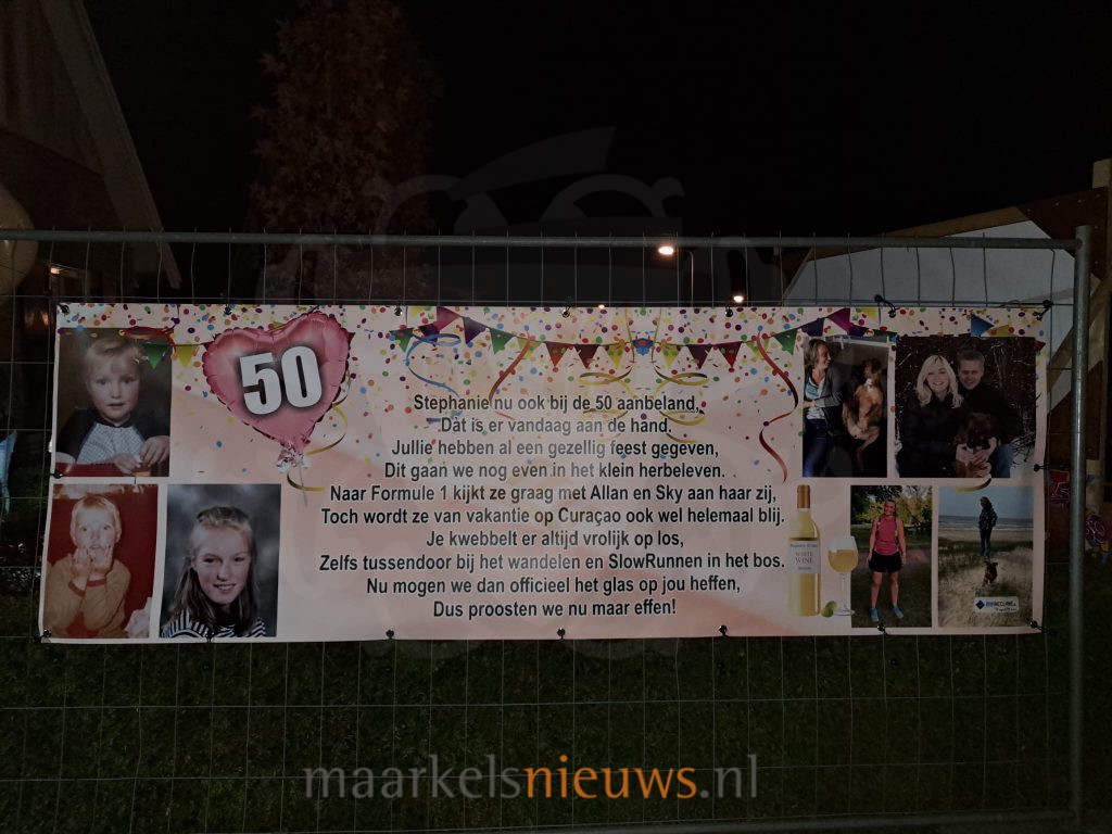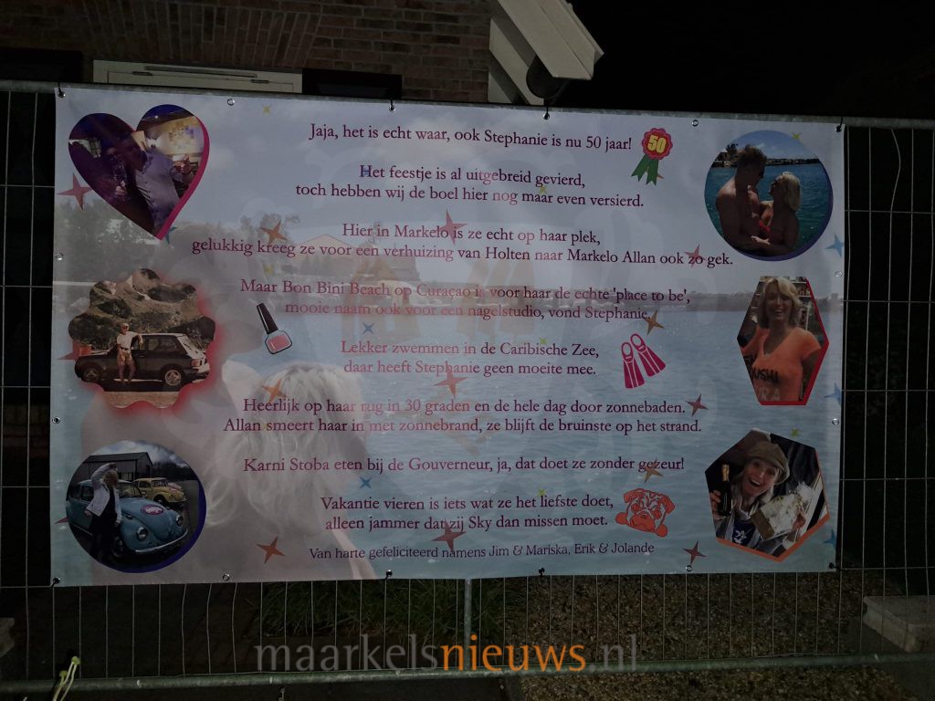 Stephanie de Vries is vandaag 50 jaar geworden. Gisteravond werd de tuin aan de Spelleweg versierd door vrienden, buren en familie. Een feestje werd in juli al gevierd, maar nu is Stephanie dan toch echt Sarah. Namens vrienden, buren en familie feliciteren we Stephanie van harte met haar 50e verjaardag en wensen haar een fijne dag.