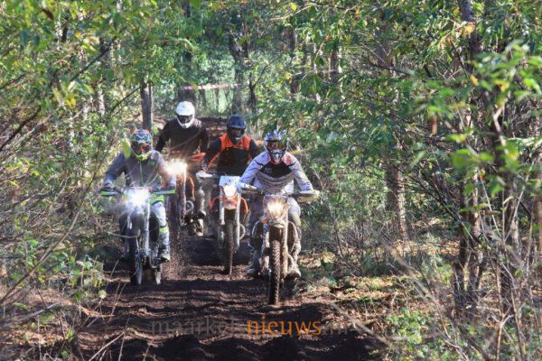 De omgeving van Markelo stond vandaag volledig in het teken van de 34e editie van de Vijf Heuvelen Off Road Rit. Om 10.00 uur vertrokken de eerste motoren bij herberg De Pot, waar de start- en finishlocatie gevestigd was. Deze jaarlijkse rit, een hoogtepunt voor liefhebbers van enduromotorcross, trok ook dit jaar weer veel belangstelling. De parkeerplaatsen bij herberg De Pot, evenals die bij zwembad De Vijf Heuvels en Dieka, stonden al snel vol met auto’s en aanhangers van de deelnemers.