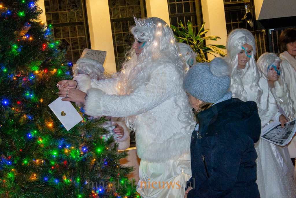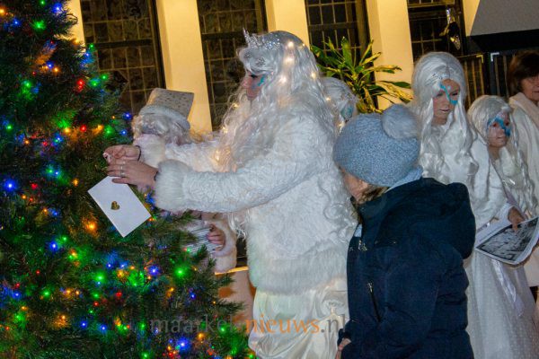Na het toneelstukje hielpen de Sneeuwkoningin en haar ijsprinsessen iedereen die een wens in de kerstboom wilde hangen. Ook wie het bijzondere moment van vanavond heeft gemist, kan nog meedoen. Tot en met 24 december staat op de trap van Het Beaufort een prachtige kerstboom waarin wensen gehangen kunnen worden.