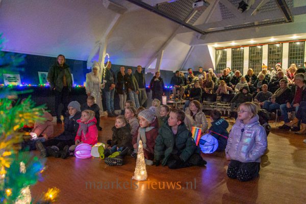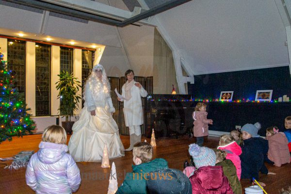 Bij aankomst bij Het Beaufort werden alle deelnemers welkom geheten in een sfeervol versierde zaal. Hier speelde zich een kort toneelstukje af en werd de Sneeuwkoningin officieel verwelkomd in Markelo, na een jaar van afwezigheid. De kinderen en volwassenen luisterden ademloos toe en genoten van het magische moment.