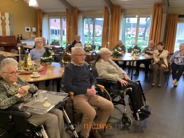 Vandaag werden bewoners, vrijwilligers en medewerkers van Anholtskamp verrast door een hartverwarmend optreden van kinderen van basisschool De Zwaluw. Als onderdeel van het project ‘Jong en oud, samen goud’, dat al enkele jaren voor verbinding zorgt tussen jong en oud in Markelo, brachten de kinderen de kerstsfeer tot leven met het zingen van liedjes. In feestelijke kersttruien en met vrolijke kerstmutsen zongen de kinderen uit volle borst bekende kerstliedjes. Terwijl de bewoners luisterden naar de muziek, gingen ze zelf creatief aan de slag met het maken van prachtige kerststukjes. Na een korte pauze, waarin de kinderen werden getrakteerd op wat lekkers en iets te drinken, volgde een tweede optreden. De zaal vulde zich opnieuw met warme klanken en enthousiaste reacties van het publiek.