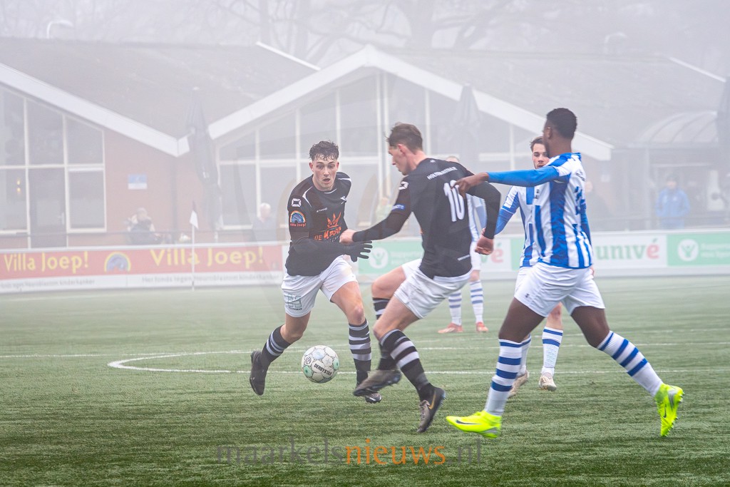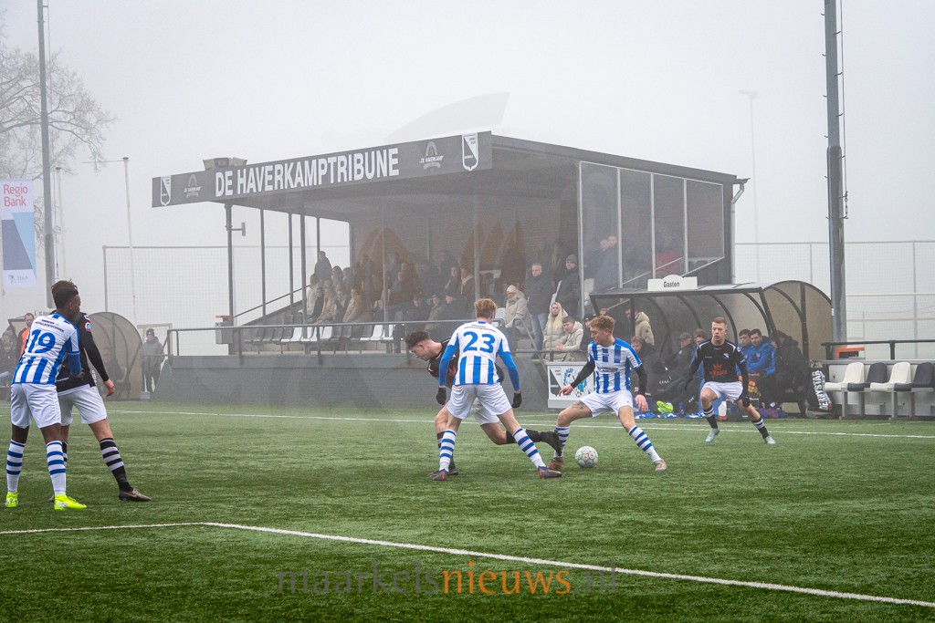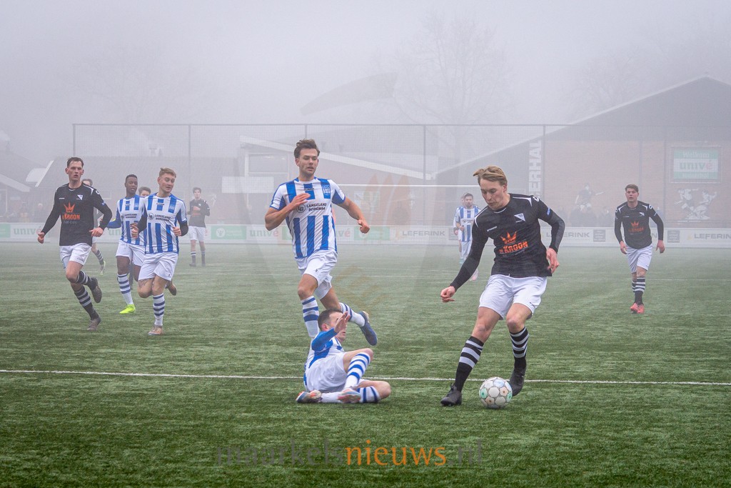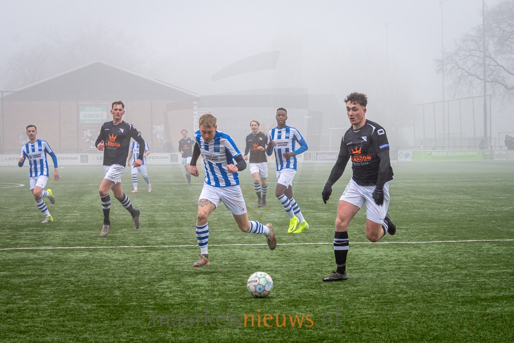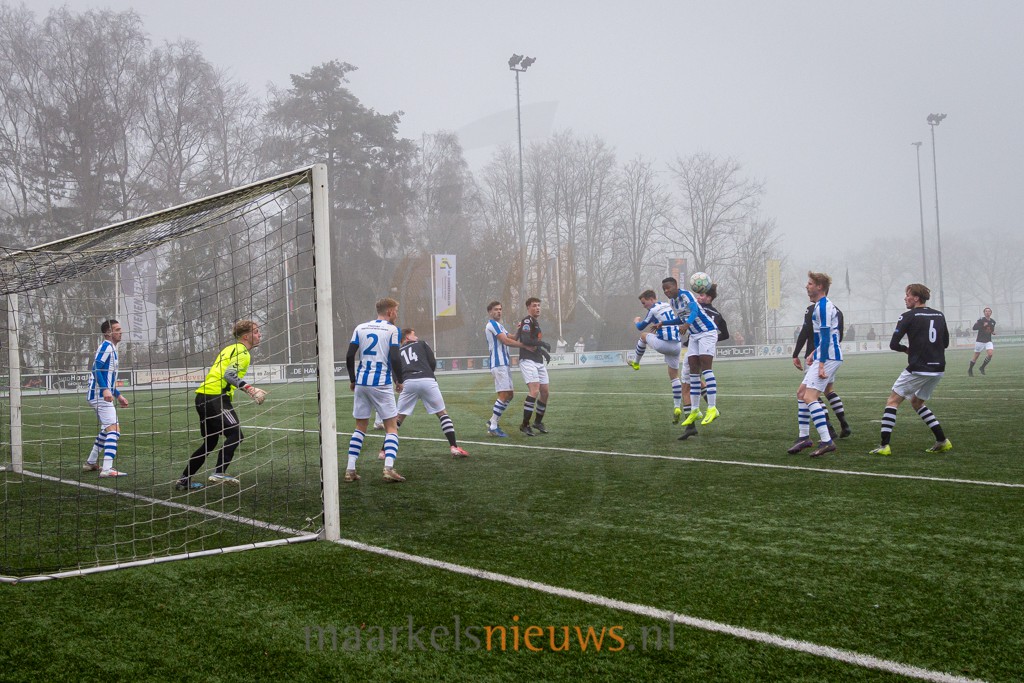 Sportclub Markelo is vanmiddag uitstekend begonnen aan de tweede seizoenshelft. Aan de eigen Endemansdijk werd Raptim uit Coevorden met 4-0 verslagen. Onder winterse omstandigheden werd er om 14:00 uur afgetrapt. Die kou was voor de bezoekers uit Coevoerden even wennen. De selectie van Raptim had zich namelijk voorbereid op de 2e seizoenshelft door op trainingskamp te gaan naar Malta. Desondanks liet Sportclub Markelo vanaf het begin zien dat het de uitstekende vorm van voor de winterstop heeft behouden. De ploeg had het betere spel en drukte dit al snel uit in de score. Na twintig minuten spelen kwam Sportclub Markelo op een 1-0 voorsprong door een doelpunt van aanvaller Miquel Schippers. De bevrijdende 2-0 liet vervolgens even op zich wachten, maar op slag van rust wist Sportclub Markelo als nog de marge te verdubbelen. Mickey Slotman tekende in de 45e minuut voor de 2-0. Zo gingen de zwart-witten met een comfortabele en verdiende voorsprong de rust in. In de tweede helft bleef de ploeg van Thijs Houwing de bovenliggende partij.